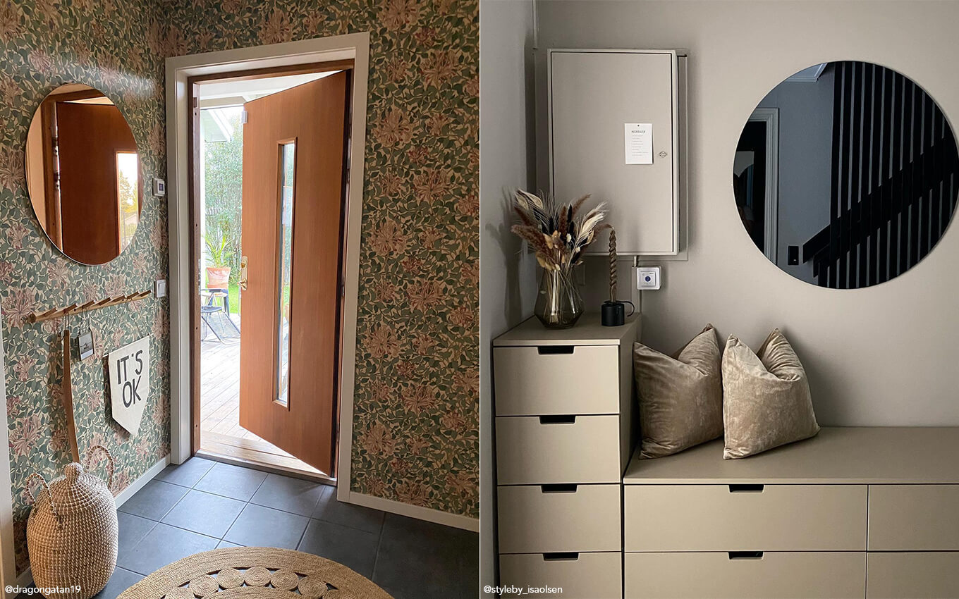 Uno specchio nell’ingresso è quasi scontato quanto un letto in camera da letto. Uno specchio nell’ingresso ha una funzione pratica: ti permette di controllare il tuo look prima di uscire di casa. Inoltre, uno specchio dona profondità a uno spazio che spesso ne ha bisogno. Gli specchi a figura intera sono comuni negli ingressi, ma recentemente anche gli specchi rotondi stanno guadagnando popolarità.