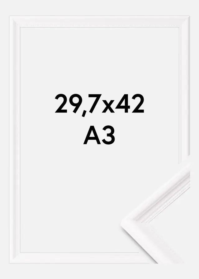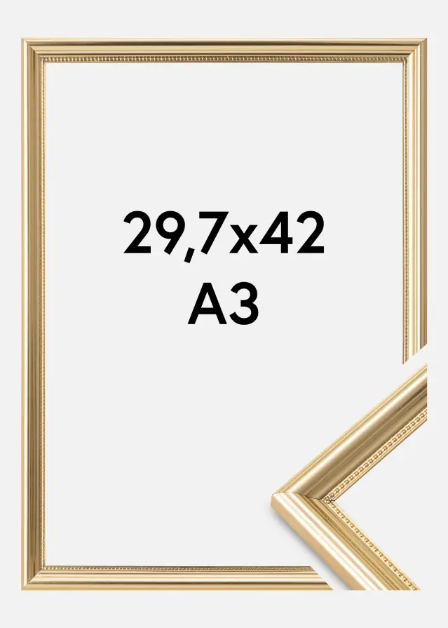 Quando si tratta della dimensione della cornice, sei naturalmente guidato dalla dimensione dell'immagine che desideri incorniciare. Vogliamo ancora brevemente accennare che le misure da noi riportate sulle nostre cornici si riferiscono alle misure che ha il quadro. Se vuoi calcolare la larghezza della cornice stessa, prendi la misura dell'immagine e aggiungi la larghezza della striscia x 2. Quindi fai la stessa cosa per calcolare l'altezza della cornice.
