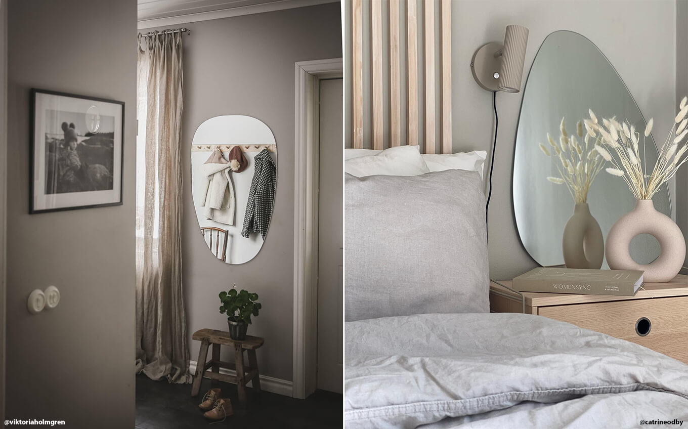Uno specchio nell’ingresso è quasi una necessità in ogni casa. È utile sia per darti un’ultima occhiata prima di uscire, sia per creare un ingresso elegante che è la prima cosa che tu e i tuoi ospiti vedrete. Posizionare uno specchio asimmetrico nell’ingresso crea immediatamente un’impressione moderna. Questo specchio ovale aggiunge sia funzionalità che un design svedese elegante alla stanza.