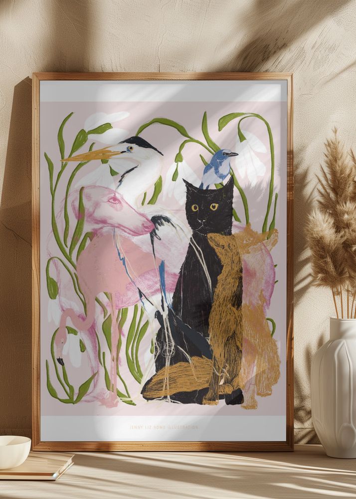 Poster alla moda che si abbinano ad altri motivi per creare una moderna galleria a parete.