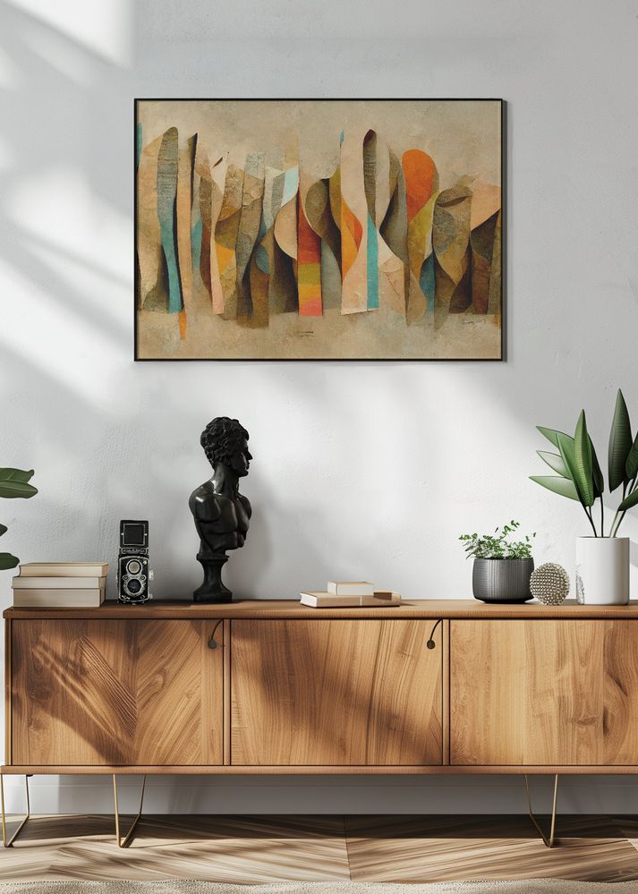 Poster alla moda che si abbinano ad altri motivi per creare una moderna galleria a parete.