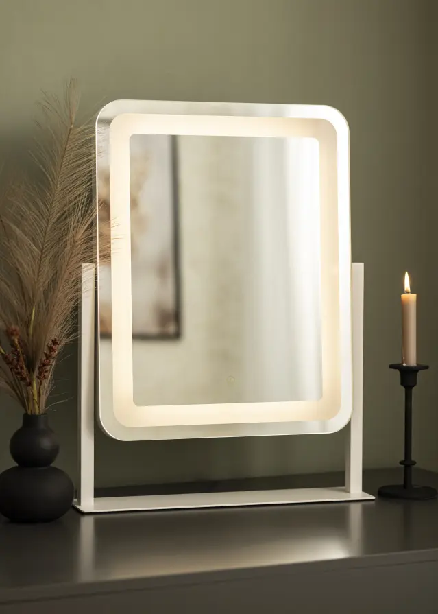 Ora, non è scontato che tu ti senta a tuo agio con la luce che ha lo specchio che scegli, quindi come al solito è importante controllare queste cose prima di appendere lo specchio e iniziare a usarlo. Vendiamo specchi dotati di illuminazione a LED che non solo fornisce una bella luce, ma elimina anche tutti i cavi! Non è mai molto bello con tanti cavi pendenti, perché rovina l'impressione e il valore estetico.