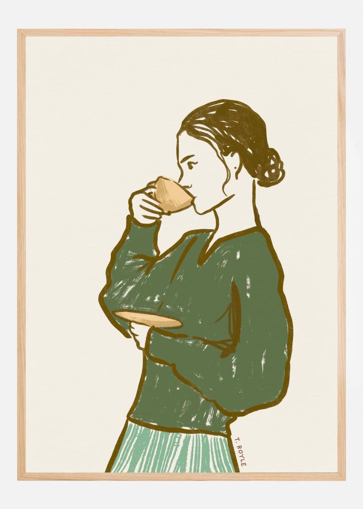 Woman Drinking Tea in Green Poster