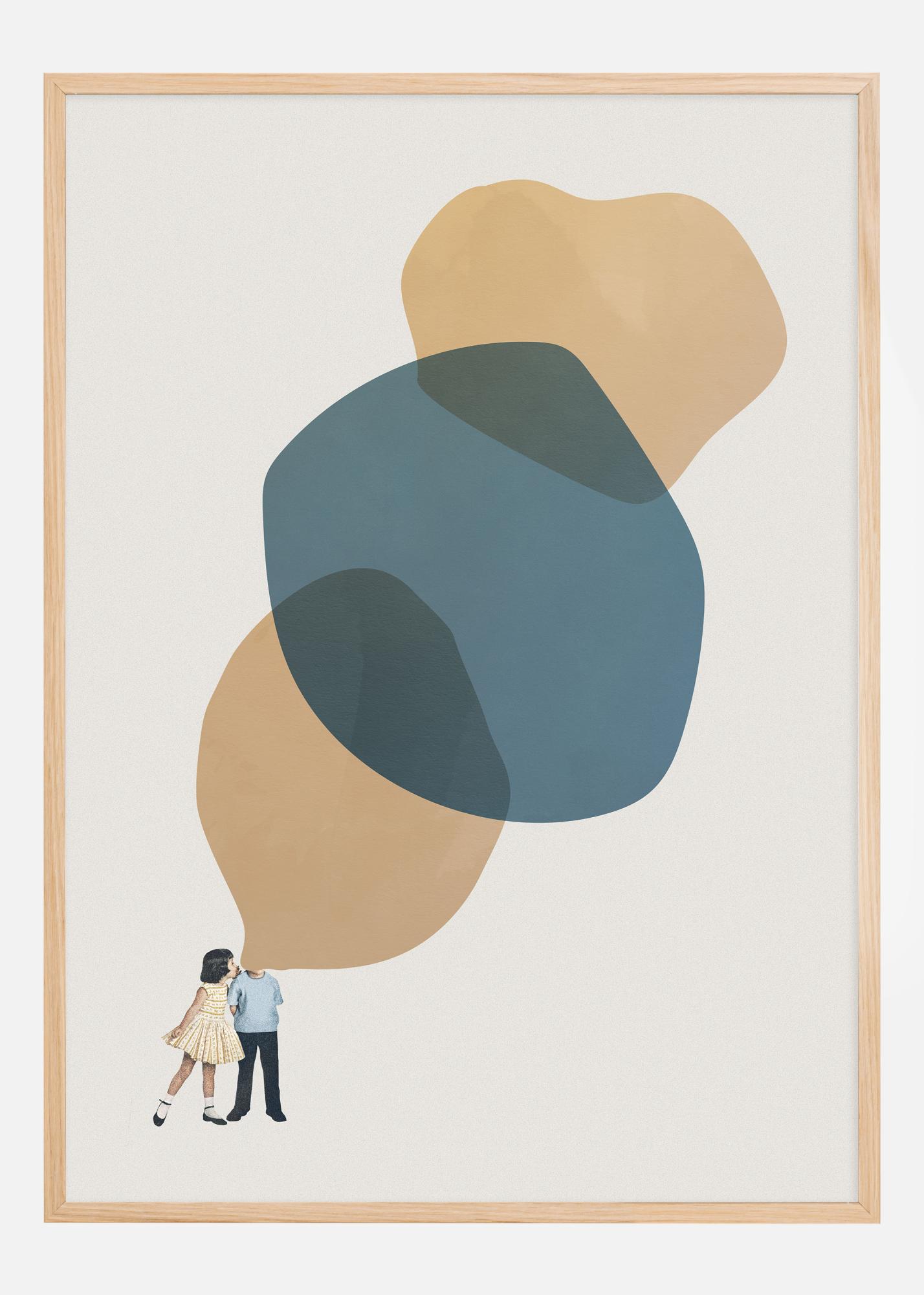 Questo poster delicato cattura un momento intimo tra due bambini che si trovano vicini, condividendo un sussurro. Il soggetto mostra queste figure infantili circondate da forme astratte morbide e sovrapposte che creano una sensazione di caldo abbraccio intorno al duo. L'interazione confidenziale dei bambini è rappresentata con una delicatezza che richiama alla mente i giochi segreti e gli accordi silenziosi dell'infanzia. Questa stampa invita a un mondo di quiete e segreti e diventa un'affascinante narrazione per la parete di ogni tipo di stanza.