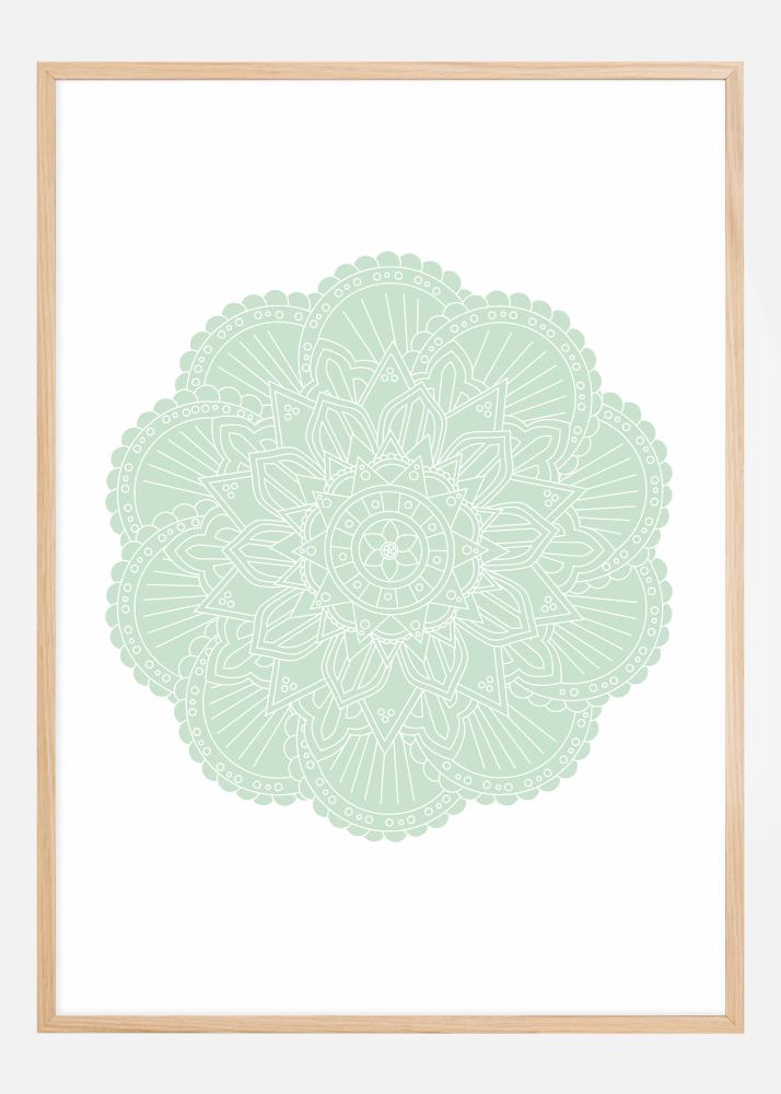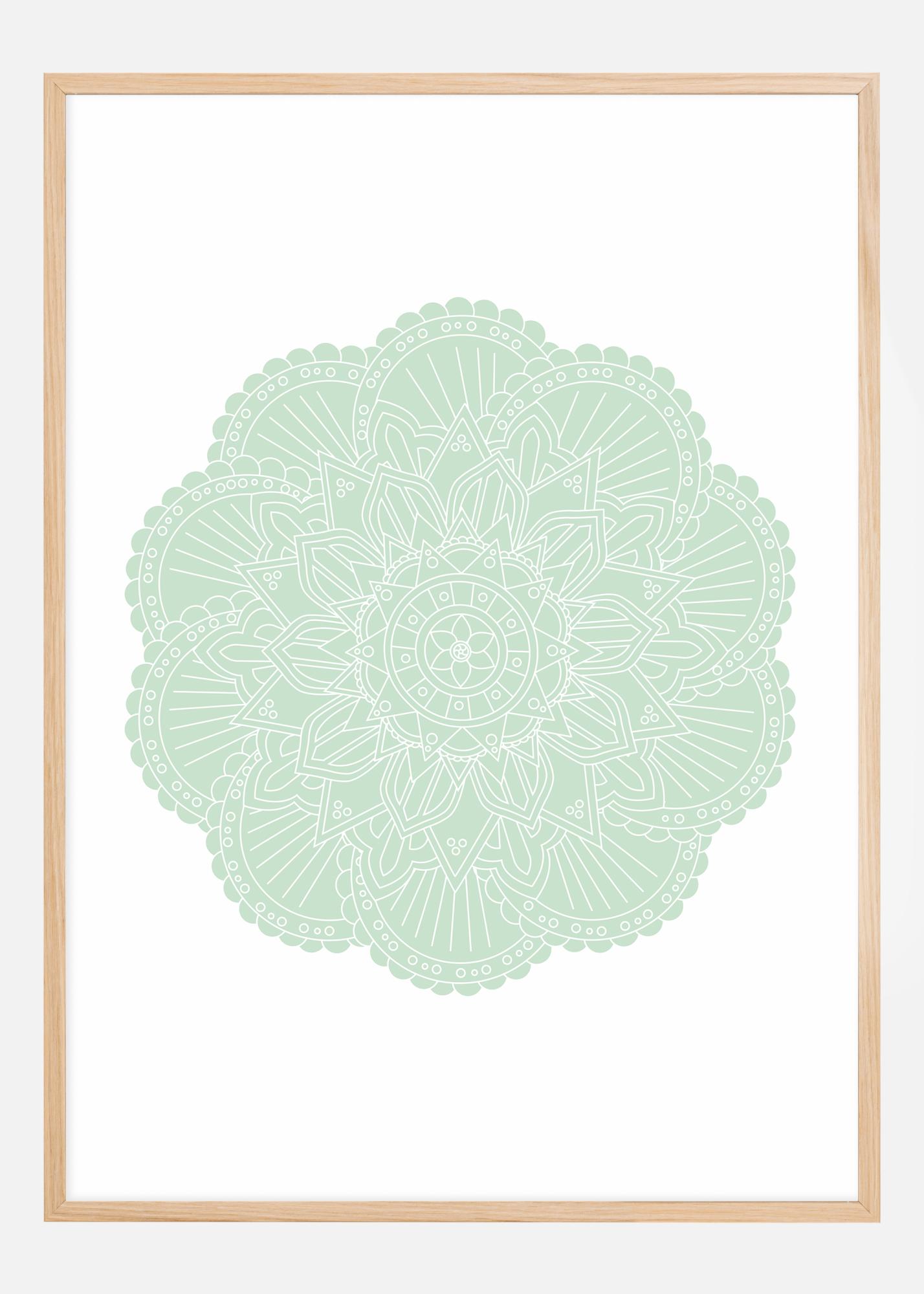 Questo poster rappresenta un mandala simmetrico in rilassanti sfumature di verde, un'immagine che è sia visivamente attraente che simbolicamente ricca. Il mandala, noto per il suo utilizzo nella meditazione e nel rilassamento, offre un motivo intricato che invita l'occhio a esplorare e la mente a vagare. I toni morbidi contribuiscono a una sensazione di equilibrio e armonia, rendendo quest'opera d'arte una cornice perfetta per la contemplazione e la calma.