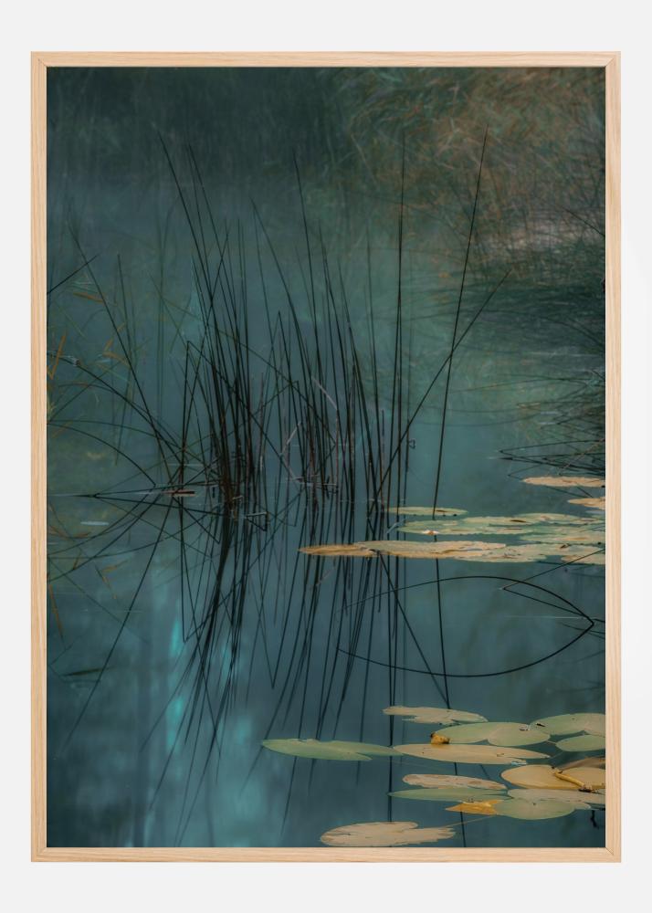 Un poster naturalistico di un fantastico lago blu con ninfee e canne. I colori morbidi si fondono insieme per creare un'immagine veramente tranquilla. L'acqua calma crea riflessi perfetti dalle canne. Diventa tutt'uno con la natura quando lo appendi al muro e lasciati trasportare dalla calma.