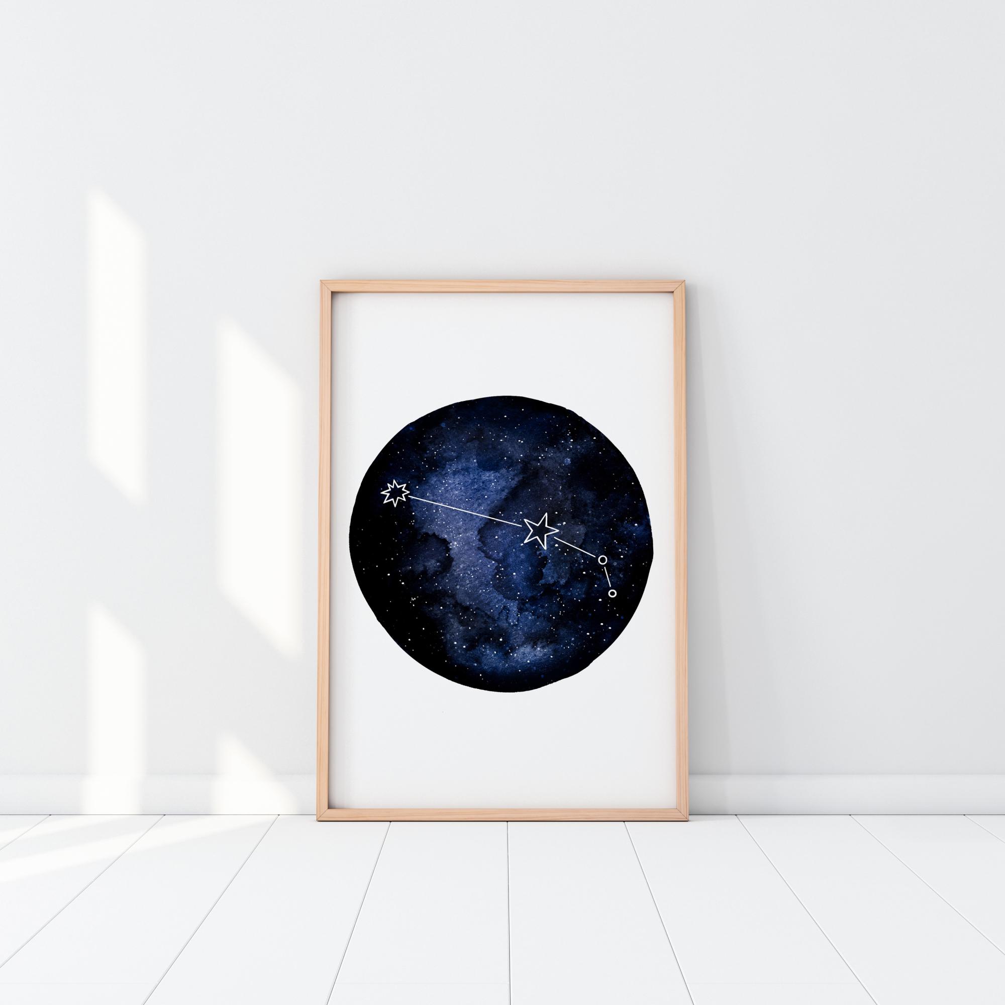 Regala un poster personalizzato a qualcuno che ami! Questo elegante poster ha un motivo del segno zodiacale dell'Ariete su uno sfondo di cielo stellato nero e blu. Sotto c'è il nome insieme alla data corrente in inglese.