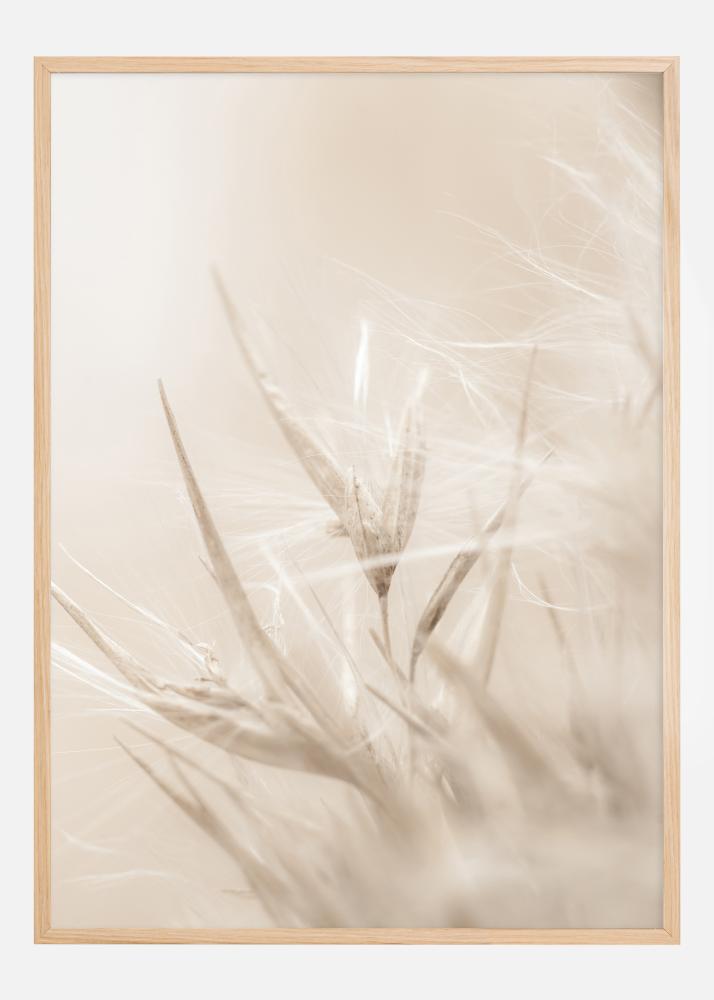 Questo poster è uno studio sulla fragilità e la forza, un primo piano di una vita vegetale a riposo, i cui dettagli e texture sono catturati in un attimo di quiete. La morbida tonalità beige e i dettagli raffinati dei fili secchi creano un'atmosfera onirica che è sia rilassante che esteticamente piacevole. Quest'opera d'arte cattura i meravigliosi contrasti della natura evidenziandone la natura delicata ma allo stesso tempo resistente.