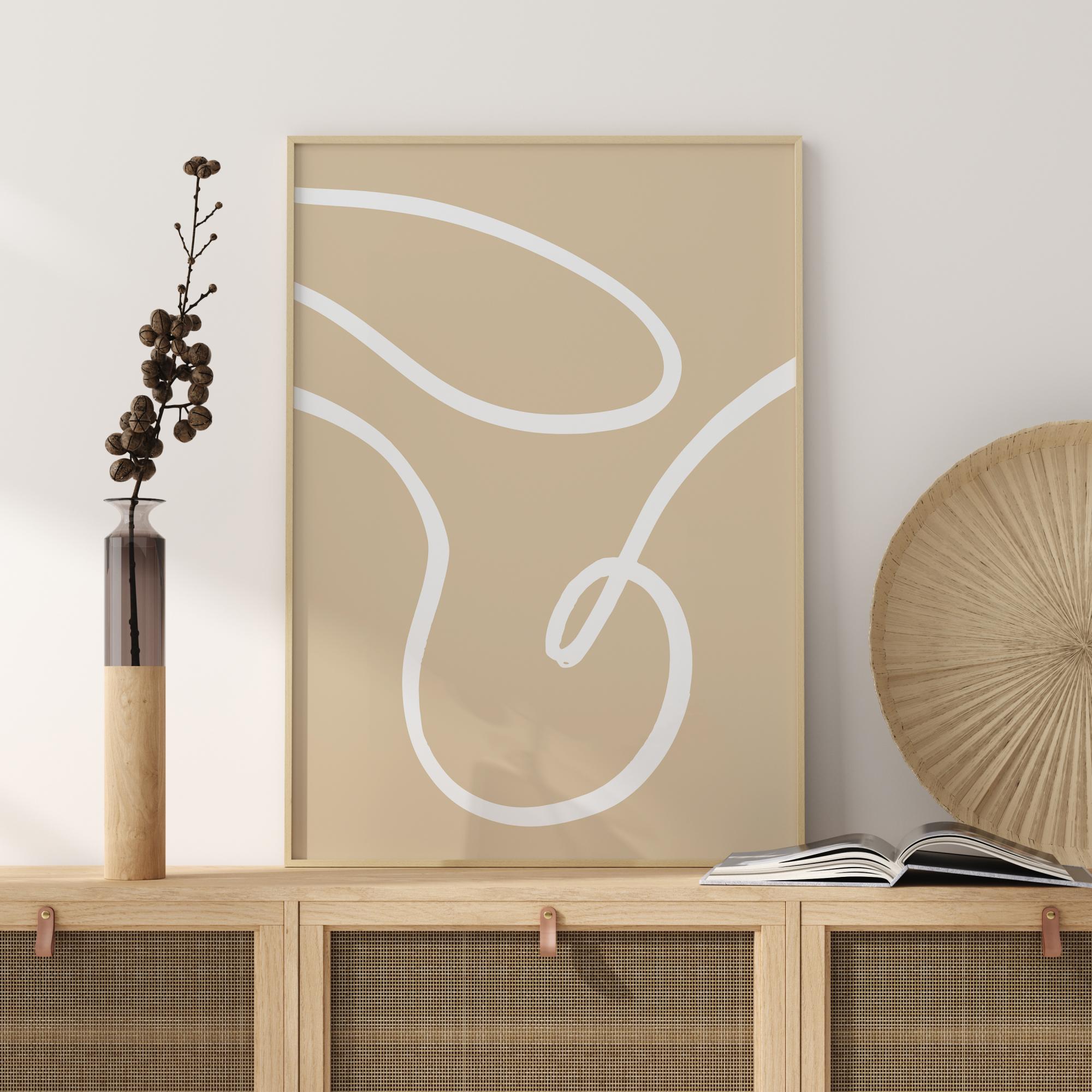 Un semplice poster con un disegno a linee dove le linee bianche crema appaiono come spirali sullo sfondo beige per far volare l'immaginazione. Puoi vedere e sperimentare ciò che vuoi mentre guardi quest'opera. Per un effetto ancora più potente, puoi appendere il poster su una parete dal colore audace in casa.