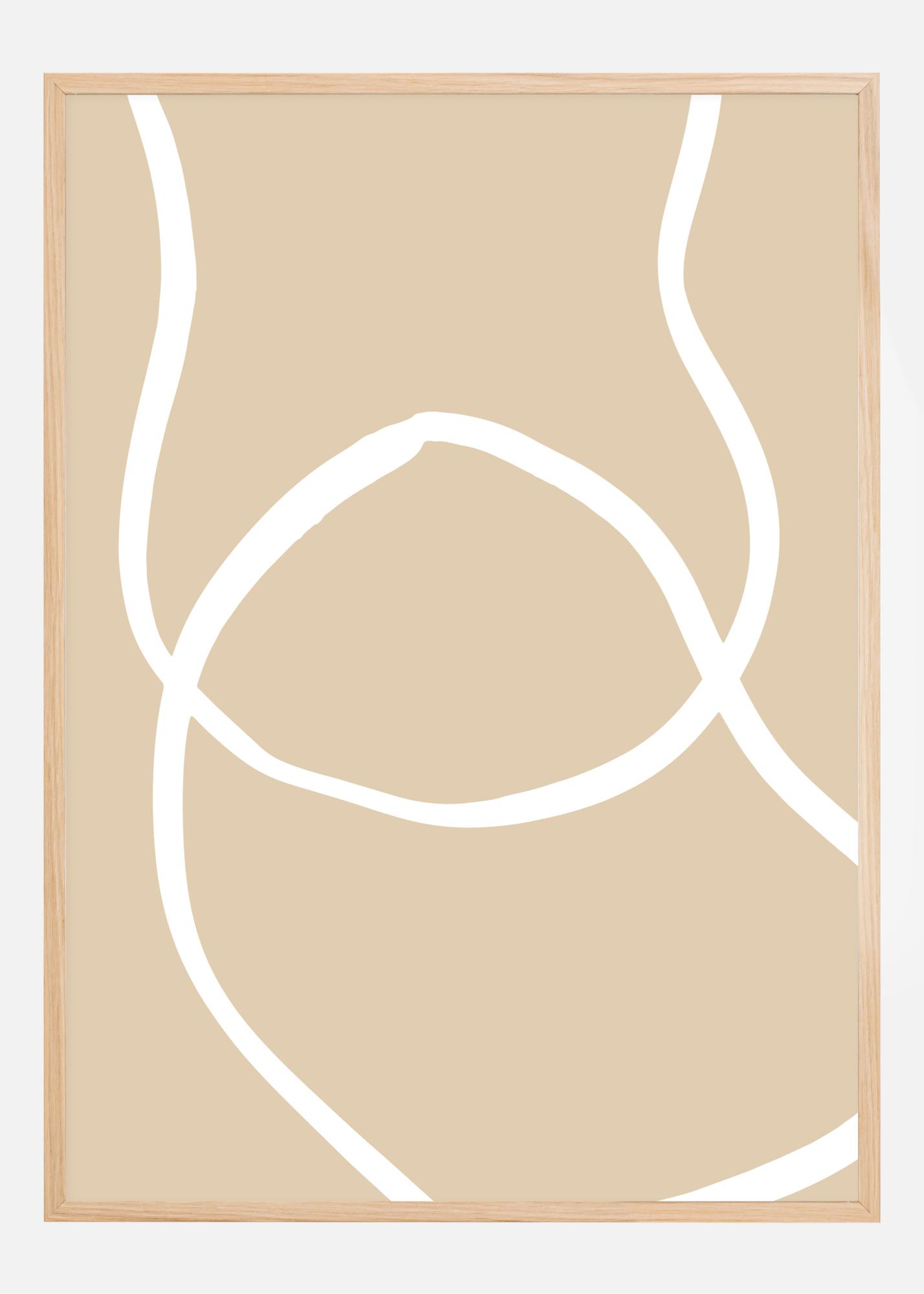 Un poster minimalista con linee crema che formano forme su uno sfondo beige. Le linee curve si muovono lungo il pezzo, con un punto di intersezione al centro che attira l'attenzione sulla forma circolare sovrapposta. Per fare una dichiarazione audace, puoi appendere questa immagine su una parete azzurra per mettere in risalto il beige.