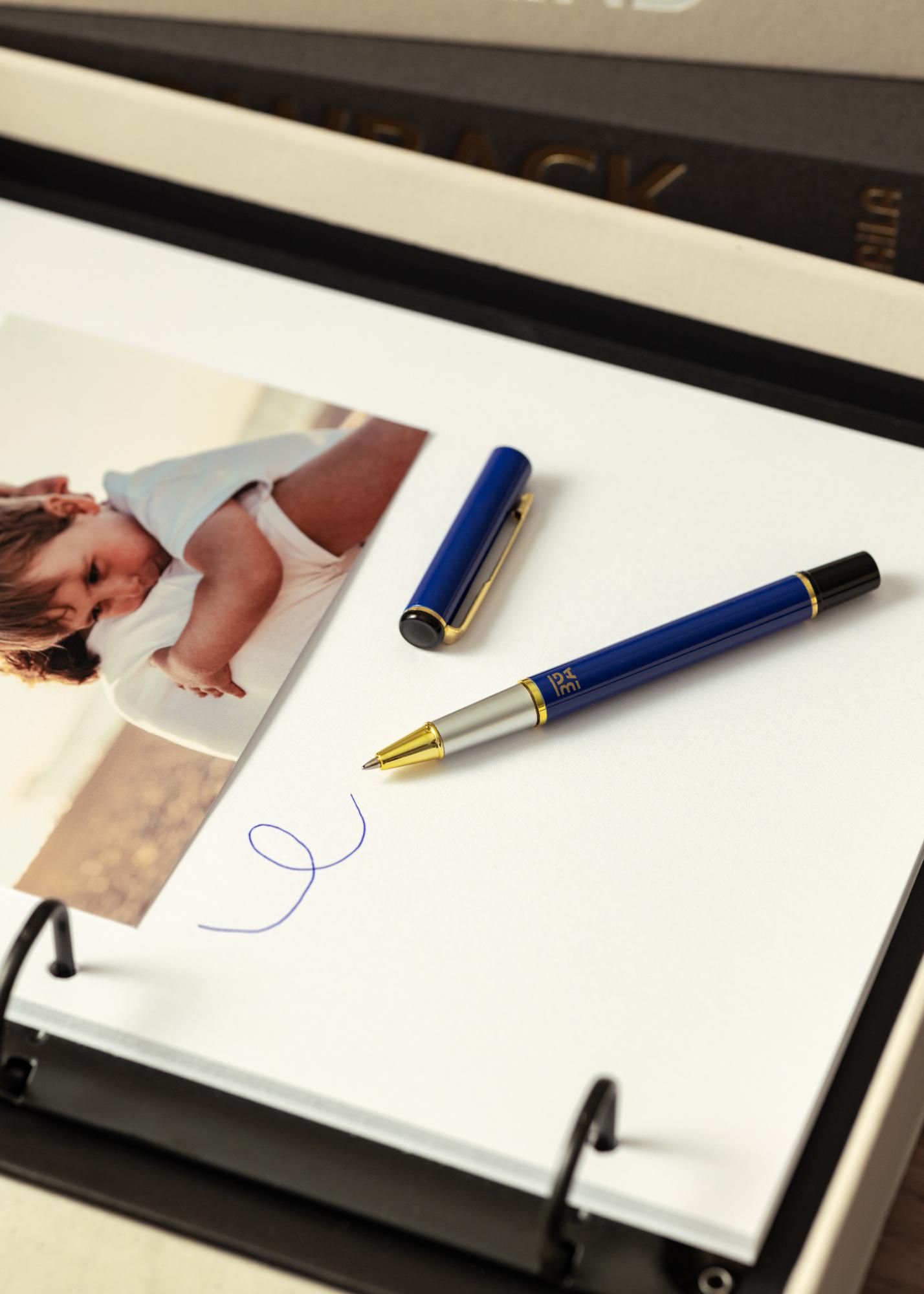 Questa elegante penna per album in blu è lo strumento perfetto per scrivere appunti personali nel tuo album fotografico. Con la sua punta fluida e precisa da 0,5 mm offre un'esperienza di scrittura uniforme e piacevole, rendendola ideale per datare le foto, scrivere commenti o creare dettagli decorativi.