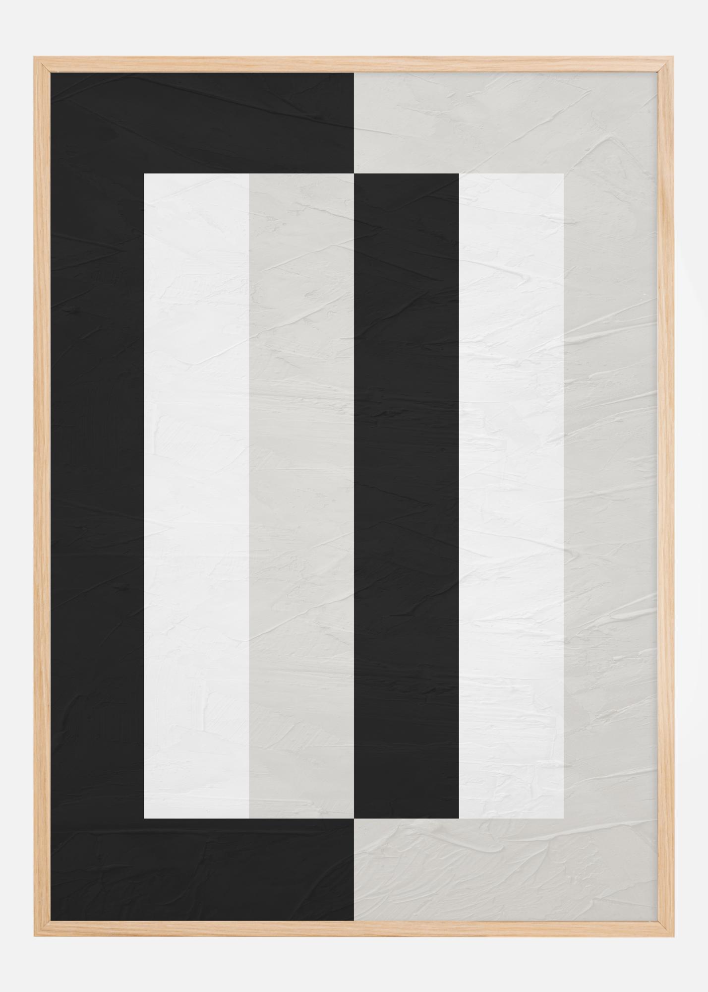 Questo poster sofisticato presenta una composizione audace e grafica che cattura immediatamente l'attenzione dell'osservatore. La combinazione contrastante di nero e bianco forma una serie di linee verticali e blocchi, creando un'illusione ottica di profondità e movimento. Questo manifesto è ideale per l'arredatore moderno che cerca un'opera d'arte che trasmetta un senso di eleganza e design contemporaneo. La palette di colori sobria rende facile integrare questa immagine in diversi ambienti e spazi.