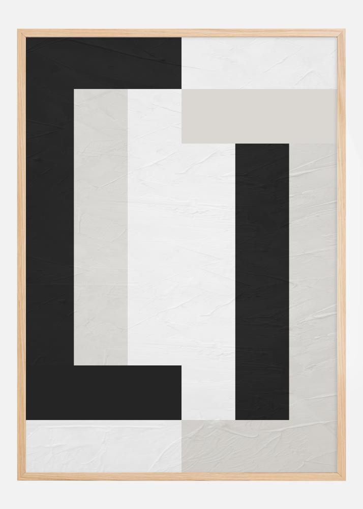 Questo distintivo poster combina la semplicità dell'arte moderna con un audace design geometrico. Il contrasto tra bianco e nero è suddiviso in blocchi rettangolari e linee che insieme creano un'idea di equilibrio e asimmetria. Ideale per chi apprezza le forti espressioni visive, questa stampa si adatta perfettamente in una casa minimalista o contemporanea. Offre una semplice eleganza che può diventare il fulcro della stanza o contribuire a una composizione più grande e complessa.