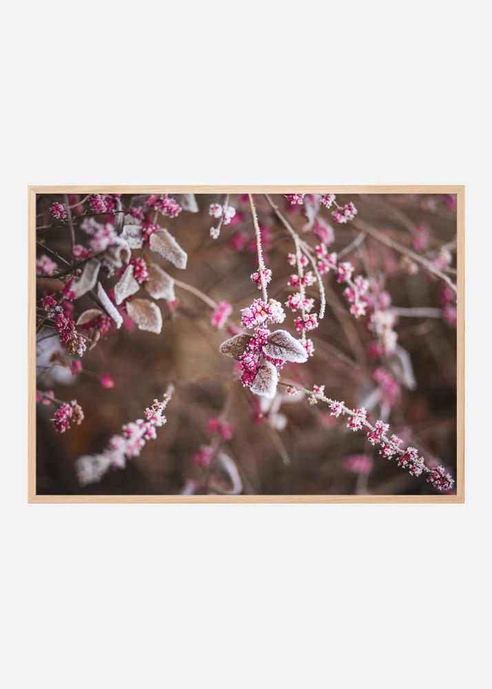 Arte fotografica con primo piano di bacche rosate ghiacciate con una breve profondità di campo. La stampa offre una sensazione calda e accogliente con le bacche in rosa e lo sfondo in tonalità di cioccolato. In una dimensione più grande con una cornice elegante, il quadro diventa un punto focale nel soggiorno, oppure metti una variante più piccola nella collezione di quadri insieme ad altri poster dello stesso colore.