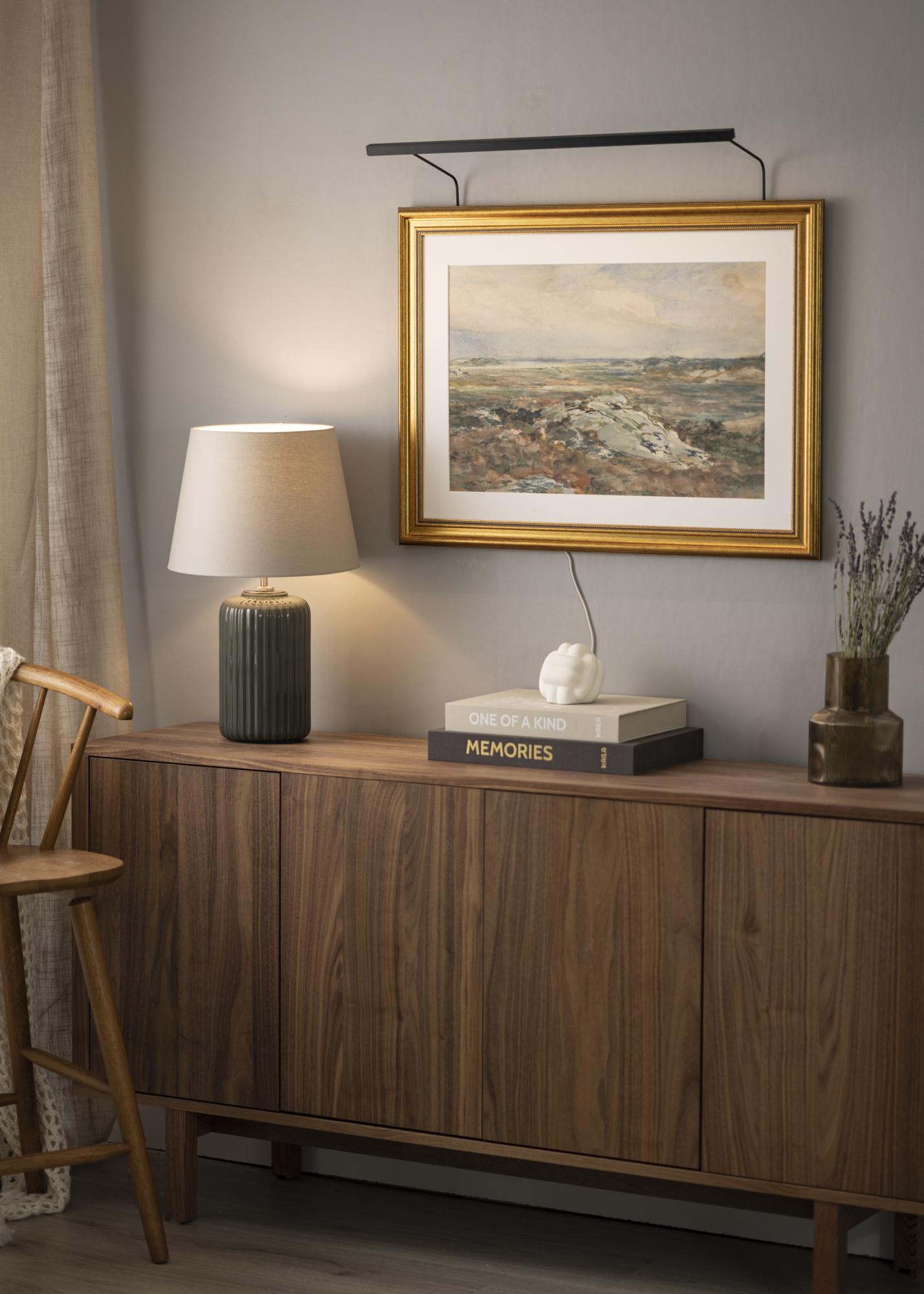 Esclusiva illuminazione per quadri di alta qualità con illuminazione a LED. Perfetta quando cerchi un'elegante illuminazione per quadri che aggiunga una dimensione extra alle tue immagini più belle.Il sistema di illuminazione è prodotto in Svezia, garantendo alta qualità.