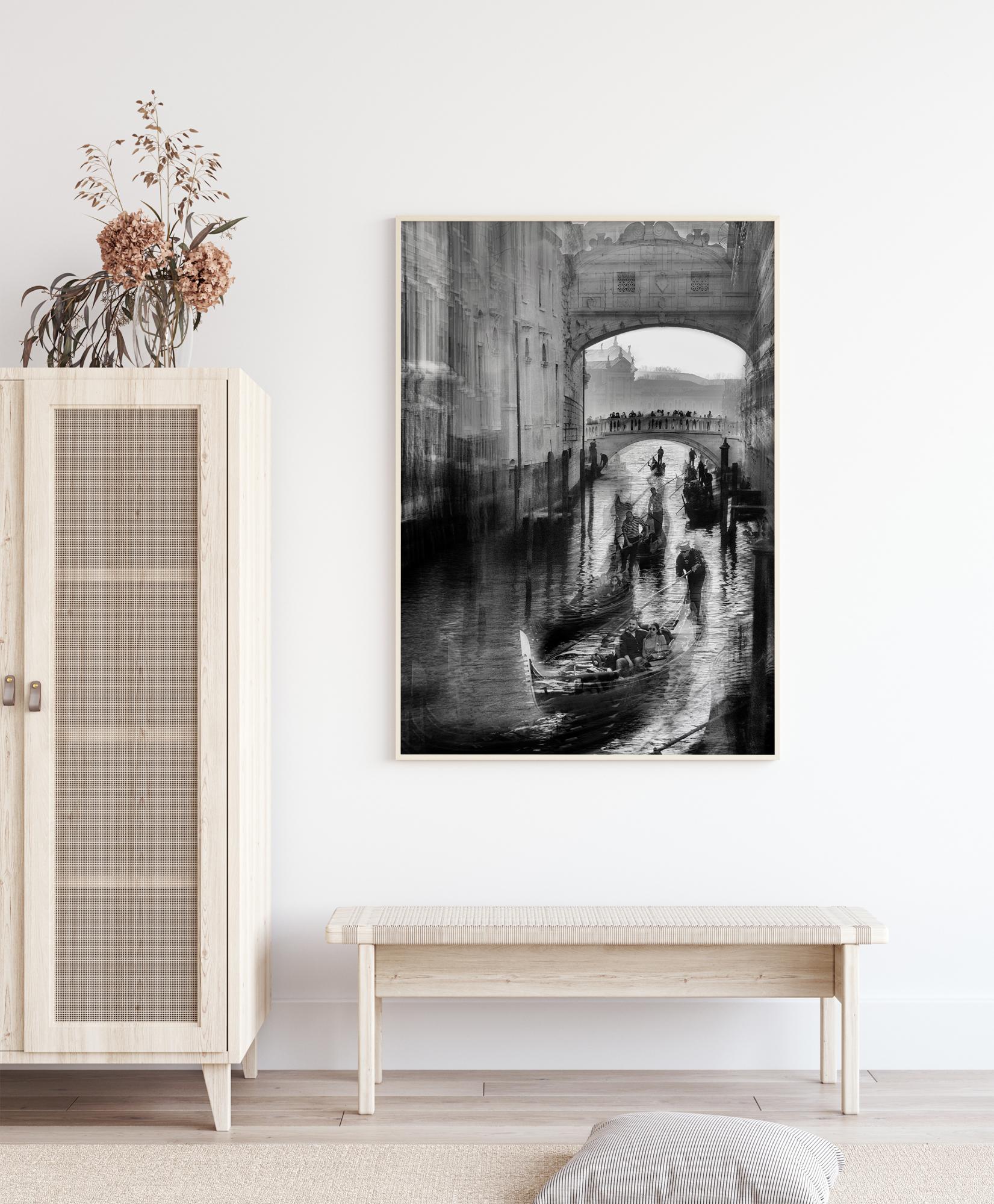 Un classico poster del ponte di Venezia. Segui il percorso delle gondole mentre attraversano il tranquillo canale. Viaggia in un'avventura nel comfort del tuo salotto con l'aiuto di questo pittoresco poster.