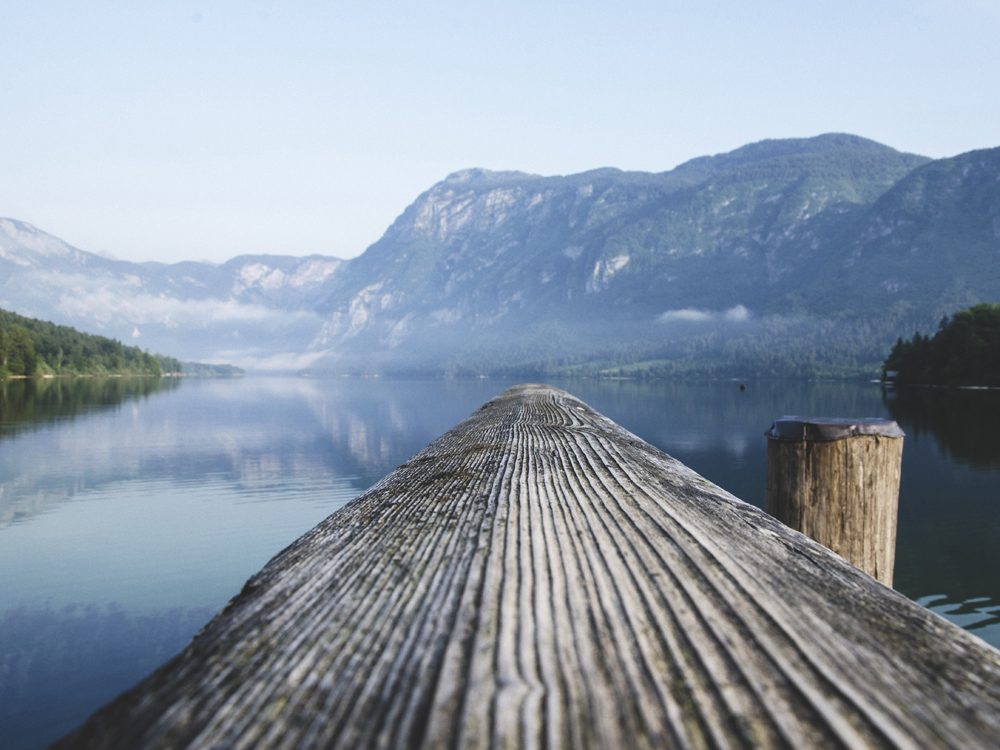 Vista su un paesaggio fiordale grandioso da un molo malandato. Stampa paesaggistica nei toni del blu che si adatta sia come quadro solitario sulla parete che insieme ad accessori marini o ad altri quadri. Completare con una cornice in legno grigio per accentuare i colori del quadro, o con una cornice nera più sottile per un'espressione più minimalista.