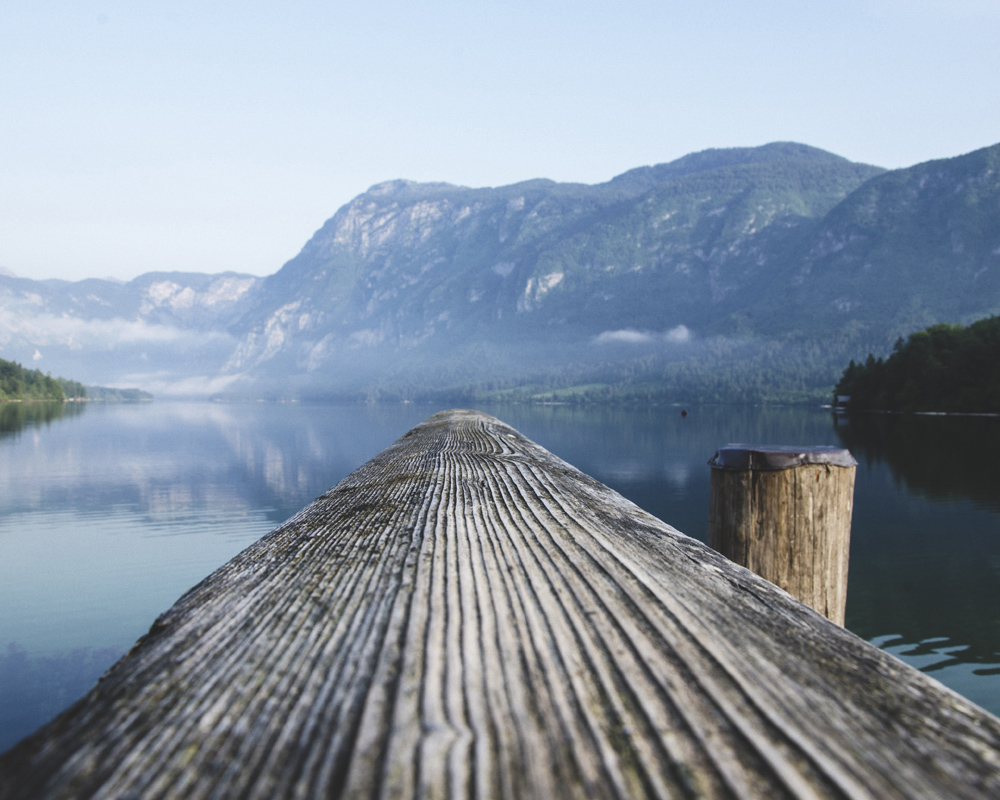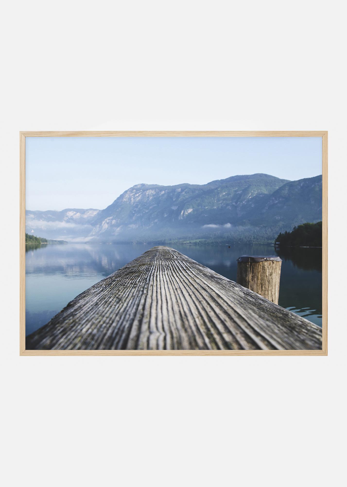 Vista su un paesaggio fiordale grandioso da un molo malandato. Stampa paesaggistica nei toni del blu che si adatta sia come quadro solitario sulla parete che insieme ad accessori marini o ad altri quadri. Completare con una cornice in legno grigio per accentuare i colori del quadro, o con una cornice nera più sottile per un'espressione più minimalista.