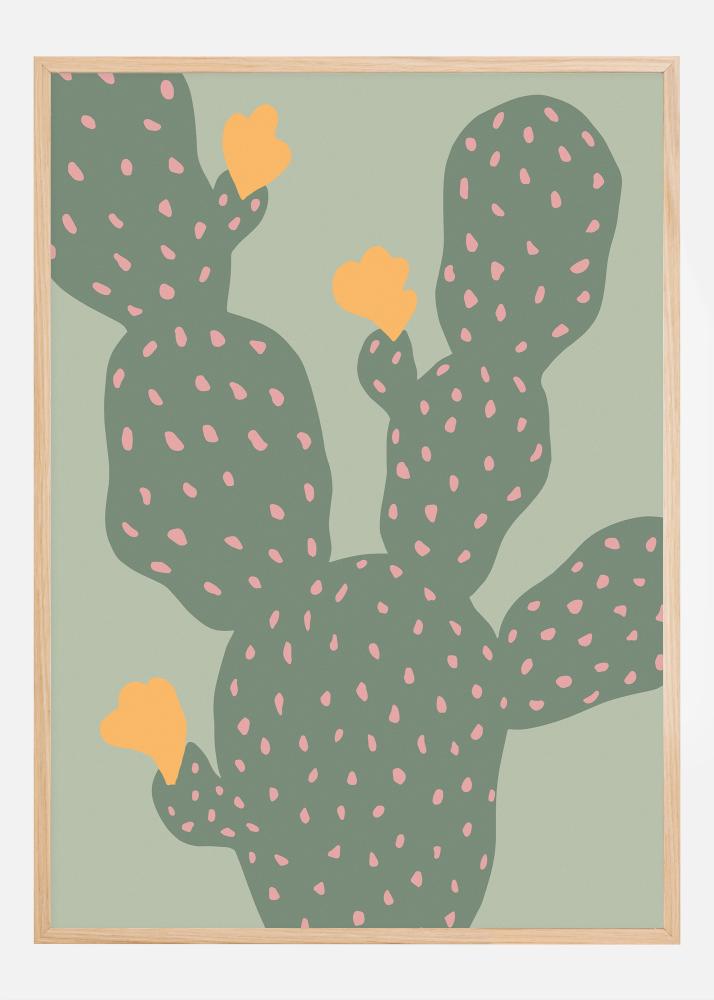 Questo poster giocoso e affascinante ritrae un'immagine stilizzata di un cactus con accenti luminosi. Con il suo sfondo verde tenue e le figure di cactus verdi punteggiate di macchie rosa e fiori gialli, l'immagine offre una sensazione fresca e gioiosa. Questa stampa d'arte combina giocosità con un'estetica di design moderna e sarebbe una meravigliosa decorazione murale in una stanza dei bambini, una cucina luminosa o uno spazio di lavoro creativo che richiede una dose di umorismo e colore ispirati alla natura.
