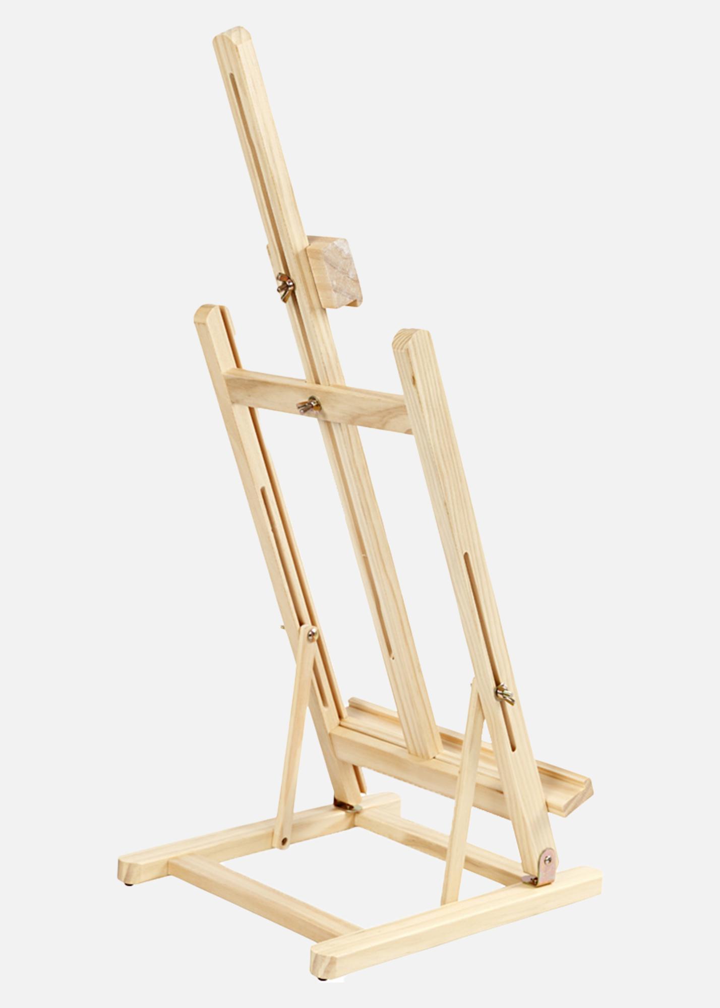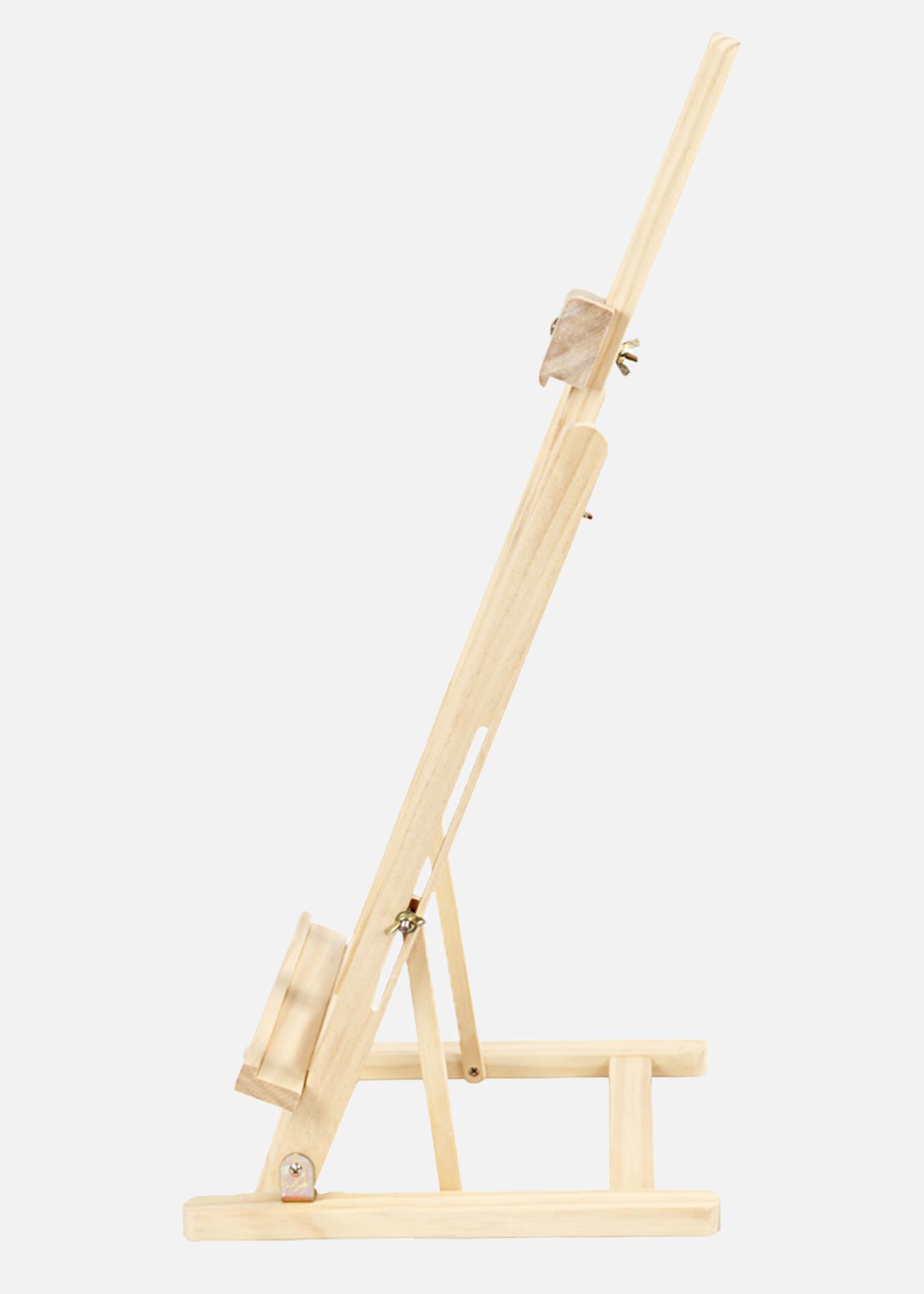 Il cavalletto è realizzato in legno e ha un supporto regolabile che rende facile adattare l'angolo alle tue esigenze. Perfetto sia per dipingere, esporre opere d'arte o come elegante soluzione di presentazione per immagini e quadri.