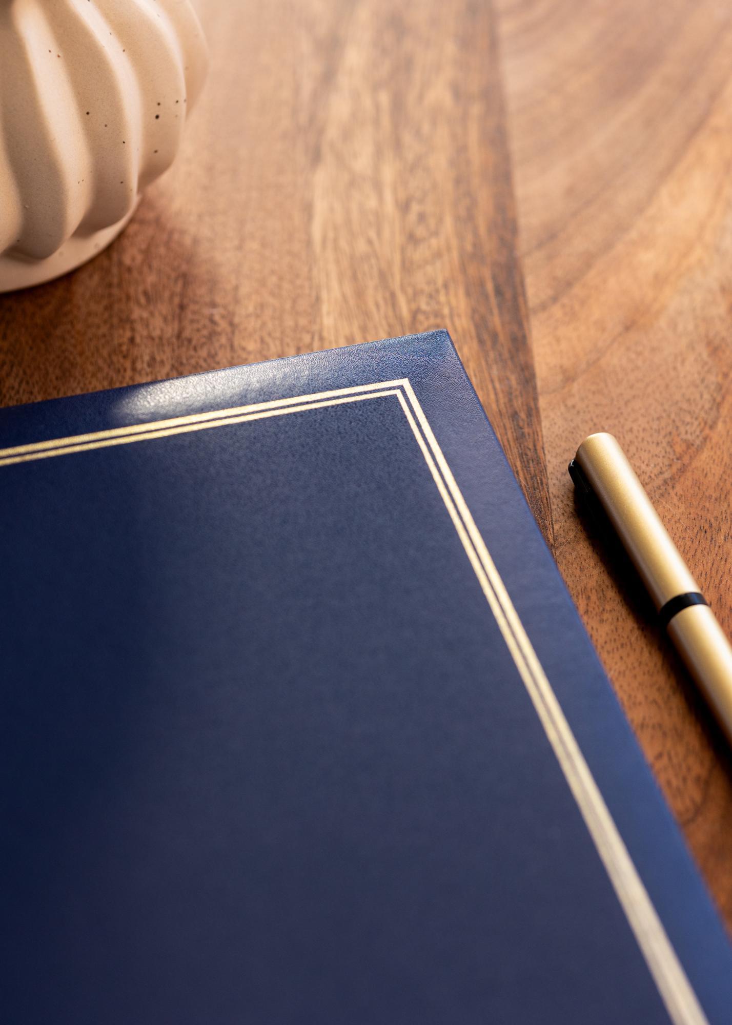 Classico Album Blu è la scelta perfetta per chi desidera creare un album fotografico personale ed elegante. Con le sue eleganti copertine blu con dettagli dorati, questo album diventa un bellissimo dettaglio d'arredamento per la tua casa. L'album misura 30x33 cm e ha 100 pagine bianche, equivalenti a 50 fogli, dove puoi incollare le tue foto e i tuoi ricordi preferiti.