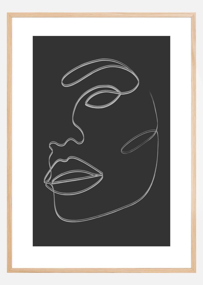 Un bellissimo poster ritratto realizzato con semplici pennellate. Linee semplici formano il volto di una donna su uno sfondo beige. Semplicità al suo meglio. Le linee stilizzate formano un occhio, un naso e una bocca. Fai sentire la tua casa come una galleria d'arte, grazie a questa immagine.