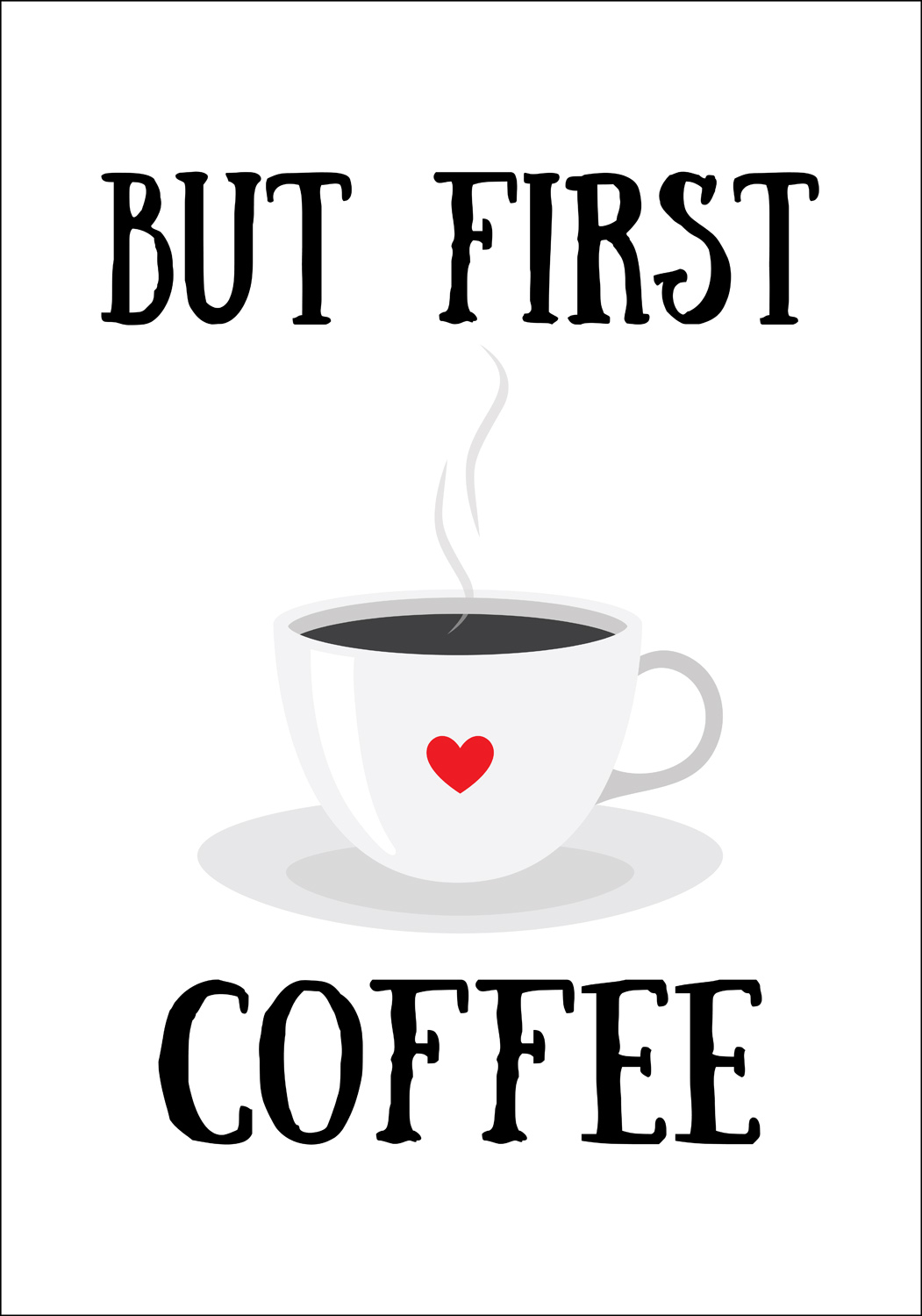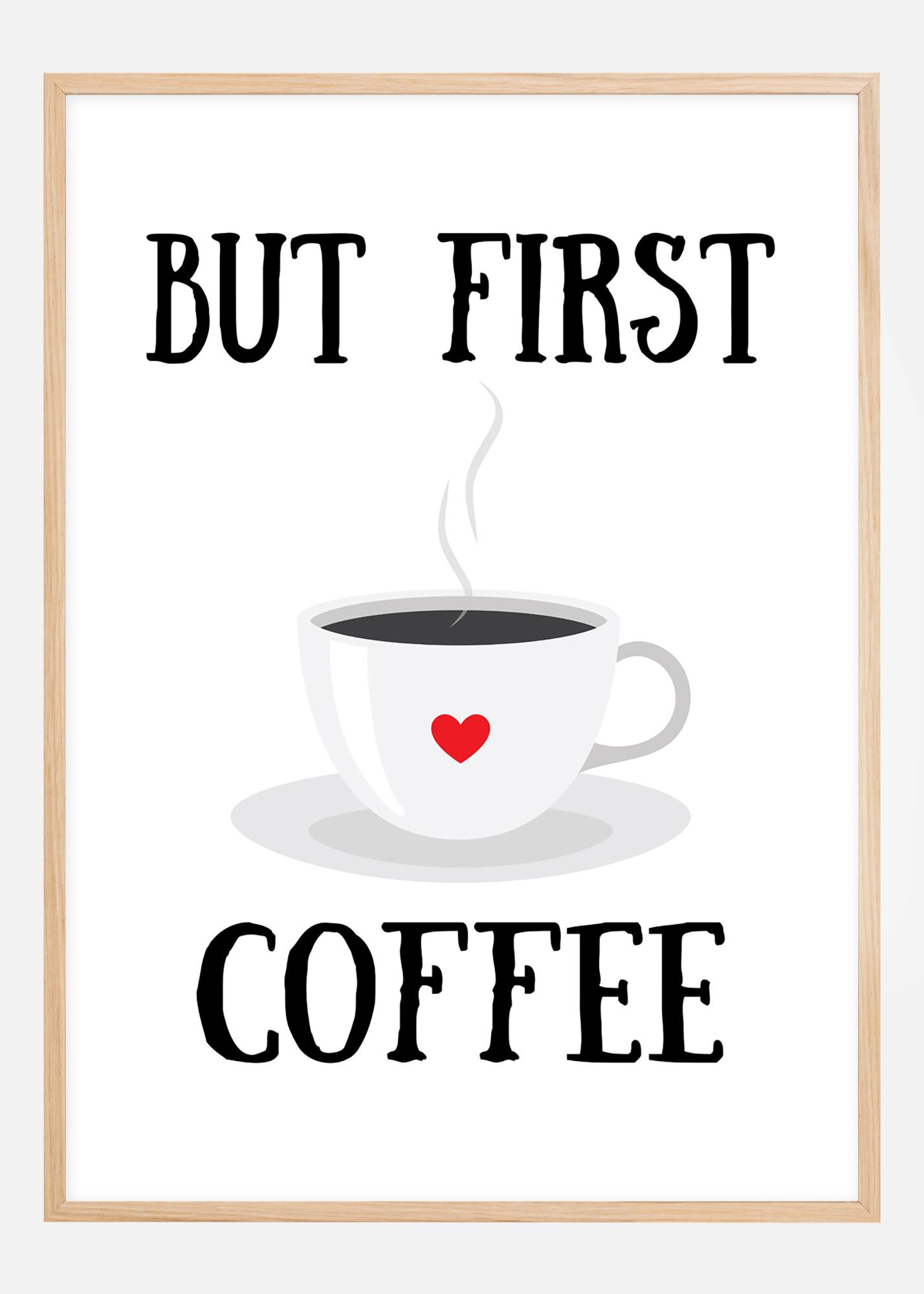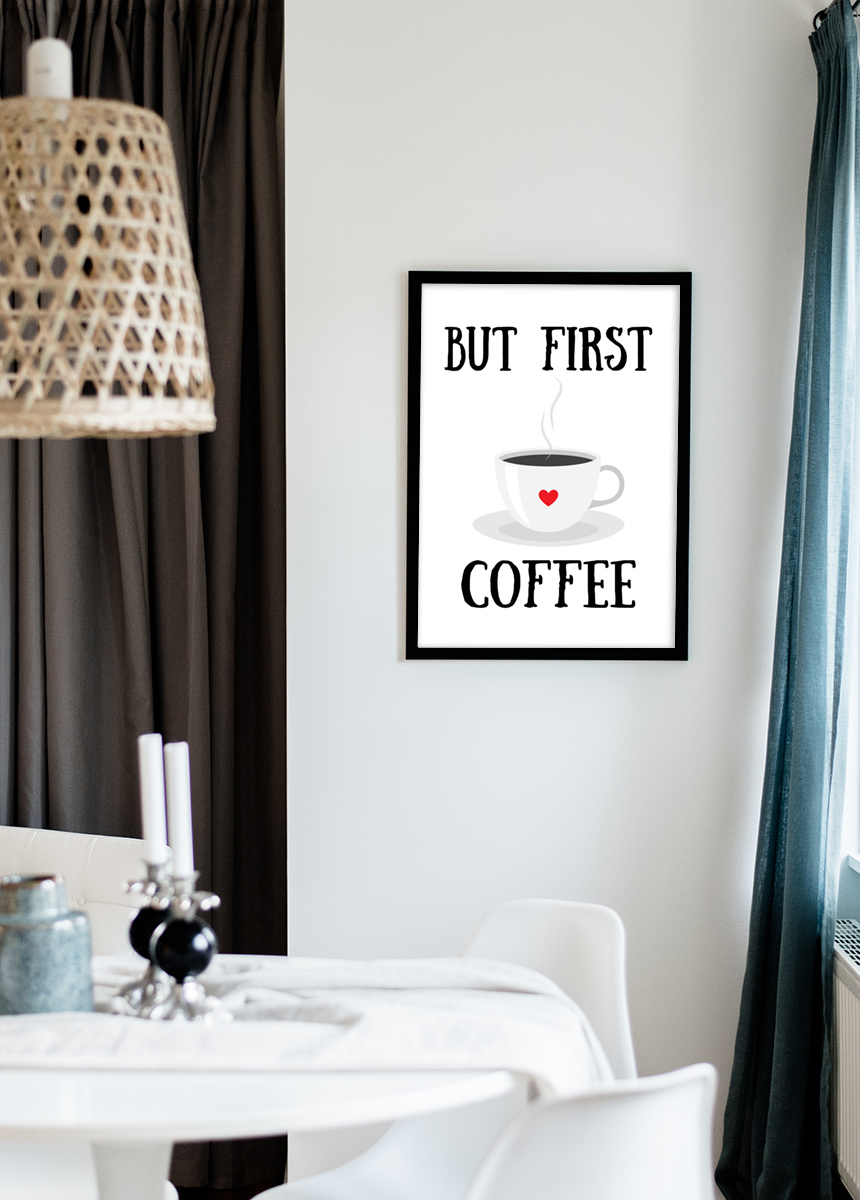 Affiche con un'illustrazione di una tazza di caffè con un messaggio per l'amante del caffè. Il dolce motivo con un cuore sulla tazza è un bel regalo da fare e si adatta bene da appendere in cucina in un arredamento rustico o ispirato al retro. Completa il poster con una cornice che si abbina allo stile dell'illustrazione e dell'arredamento per creare un'atmosfera coerente in casa.