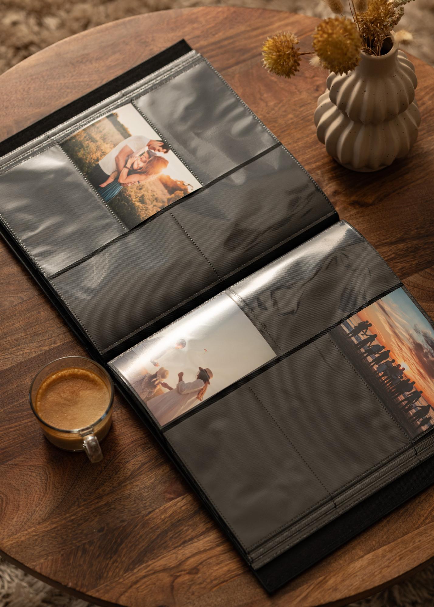 L'unicità di questo album fotografico sta nelle sue pratiche tasche per foto, che facilitano il montaggio e la sostituzione delle immagini senza complicazioni. L'orientamento delle immagini nell'album è sia orizzontale che verticale, offrendoti la flessibilità di organizzare le tue foto proprio come desideri. Le pagine nere creano un bel contrasto con le tue fotografie colorate e mettono in risalto ogni immagine nel miglior modo possibile.