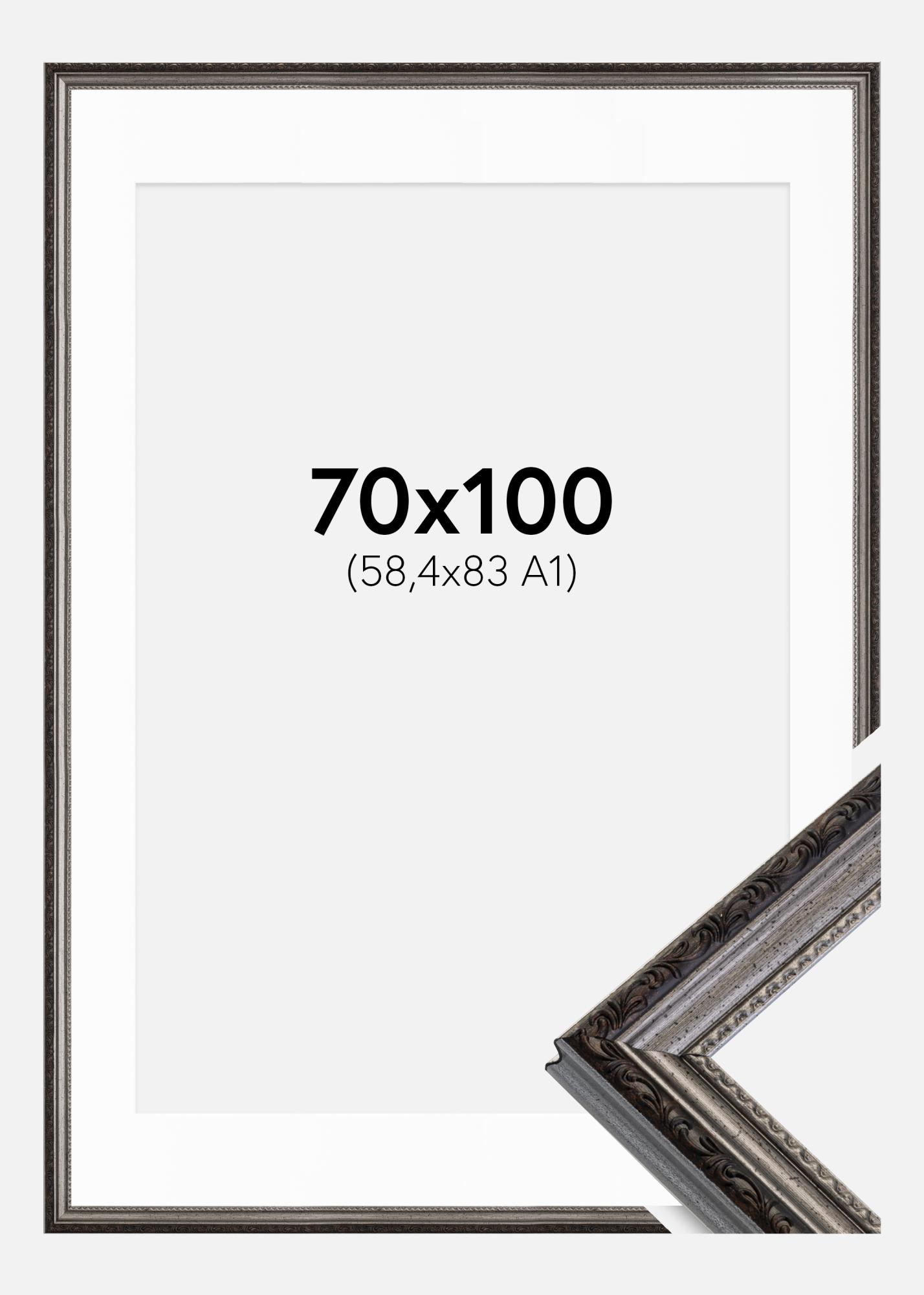 Cornice Abisko Argento 70x100 cm - Passe-partout Bianco 59,4x84 cm (A1)