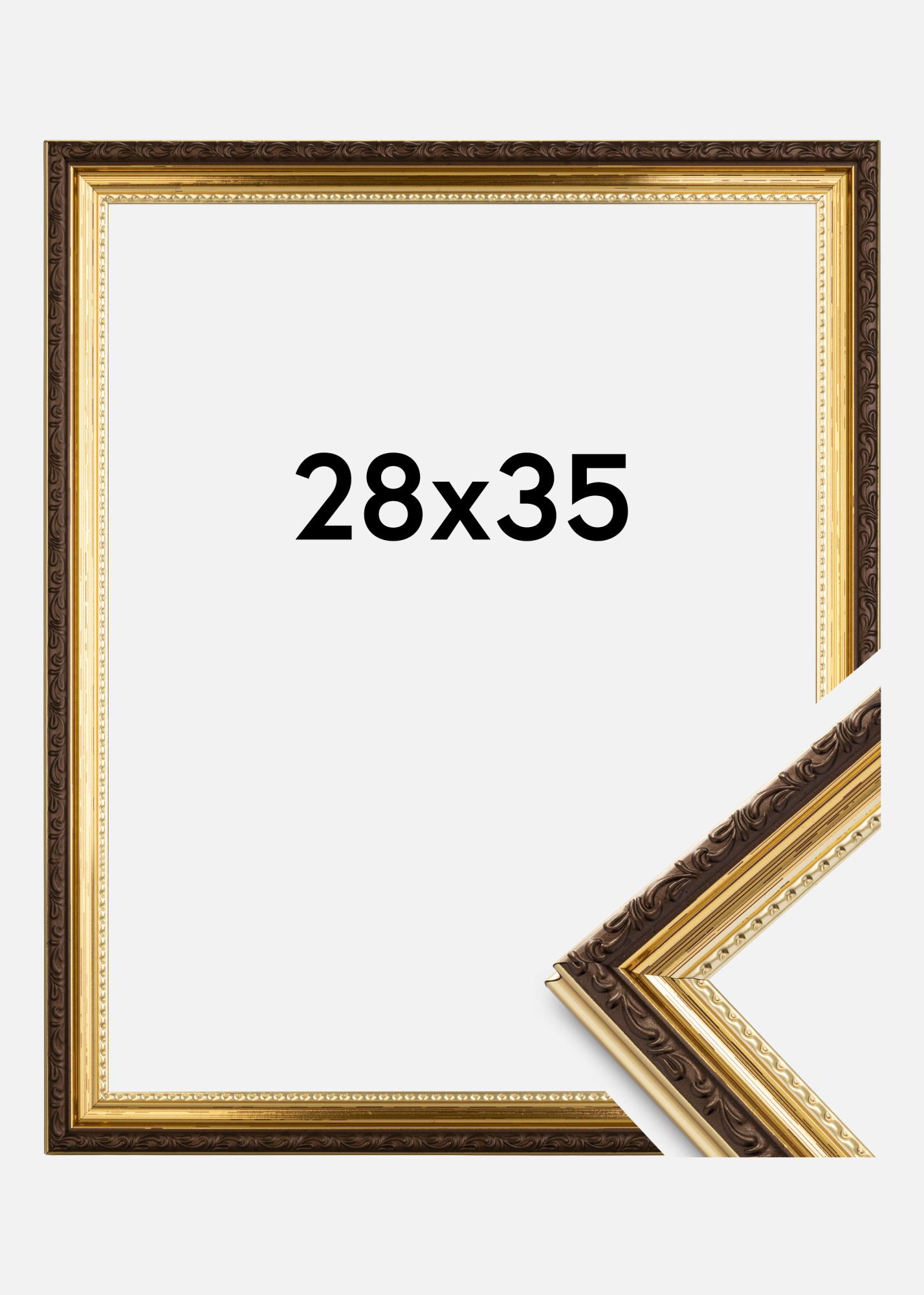 Stai cercando una cornice decorata in uno stile antico? Abisko Vetro Acrilico Oro è una robusta cornice dorata con ornamenti eleganti. La larga cornice di 25 mm ha un colore dorato lucido con una bordatura marrone decorata al centro. Anche la parte dorata è decorata con un motivo ondulato vicino al vetro.