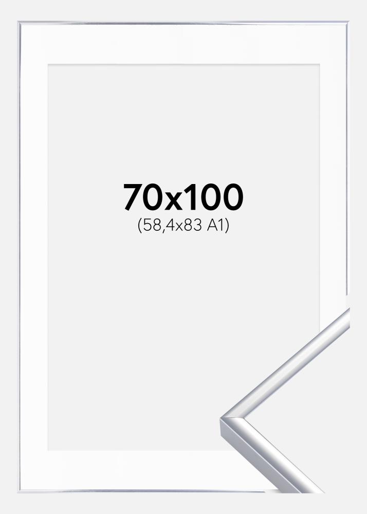 Cornice Alluminio Finitura brillante Argento 70x100 cm - Passe-partout Bianco
