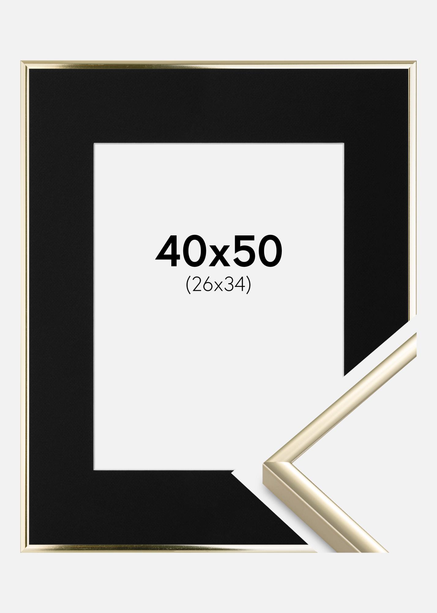 Cornice Alluminio Finitura brillante Oro 40x50 cm - Passe-partout Nero 27x35 cm