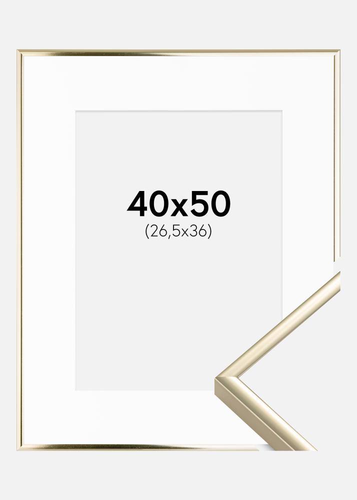 Cornice Alluminio Finitura brillante Oro 40x50 - Passe-partout Bianco 27,5x37 cm