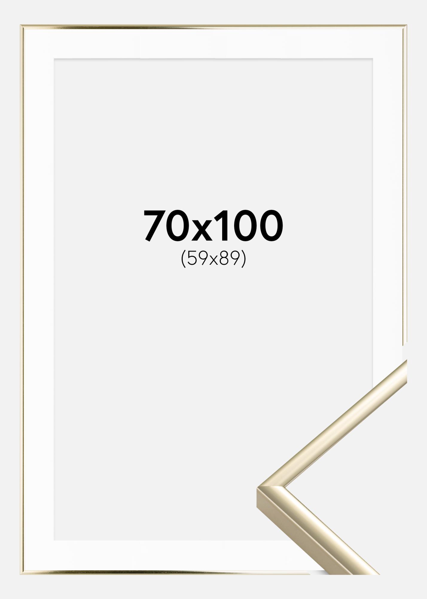 Cornice Alluminio Finitura brillante Oro 70x100 cm - Passe-partout Bianco 60x90