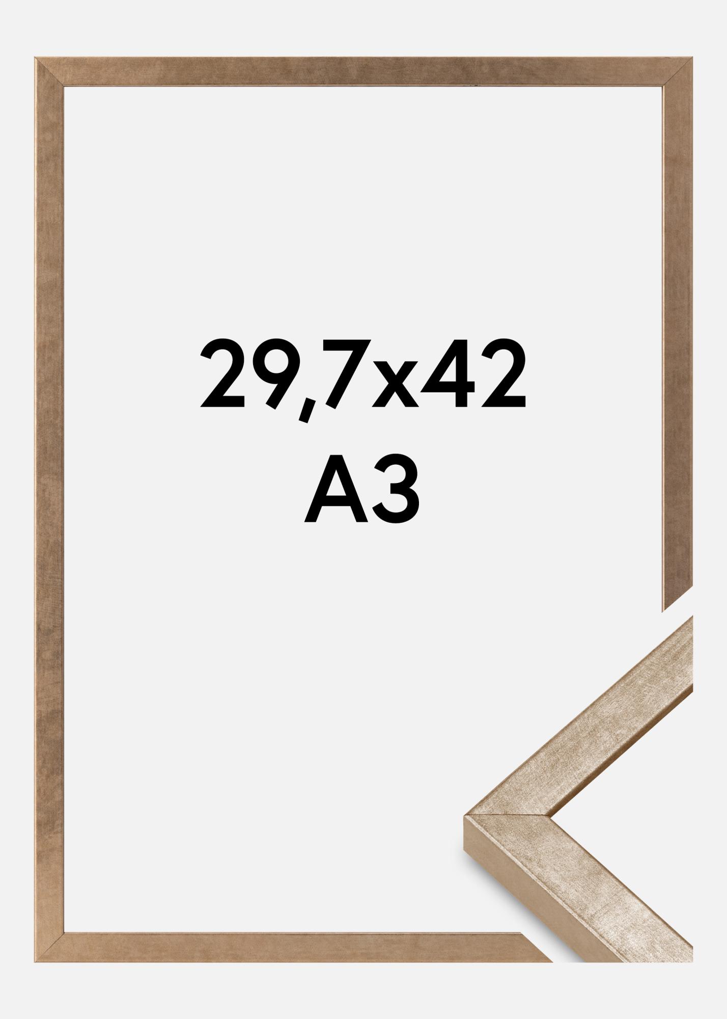Dai alle tue pareti un tocco di eleganza con questa cornice in legno color ottone di dimensioni 29,7x42 cm (A3). Perfetta per esaltare le tue opere d'arte preferite o le foto di famiglia, questa cornice è realizzata in legno ayos di alta qualità e ha una finitura sofisticata che si adatta a tutti gli stili di arredamento.