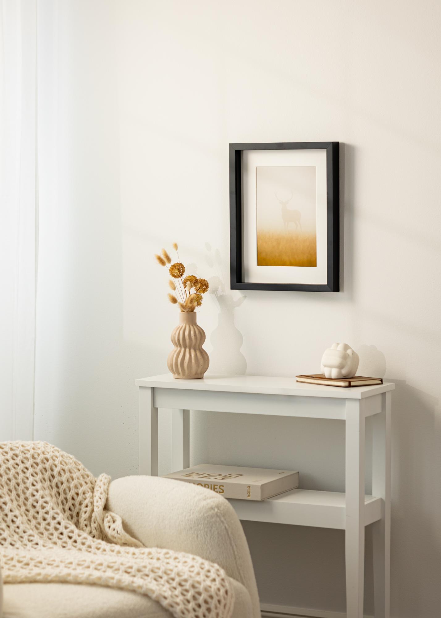 Realizzata in pino, questa cornice è sia durevole che leggera, il che la rende facile da maneggiare e montare. Una caratteristica unica di Balder Nero è la lista di distanziatori inclusa. Questa lista crea uno spazio tra il vetro e l'immagine, conferendo un effetto di profondità e permettendo di posizionare l'immagine più in profondità nella cornice o sospesa tra il vetro e il fondo. Questo offre una cornice elegante ed esclusiva che mette davvero in risalto il soggetto.