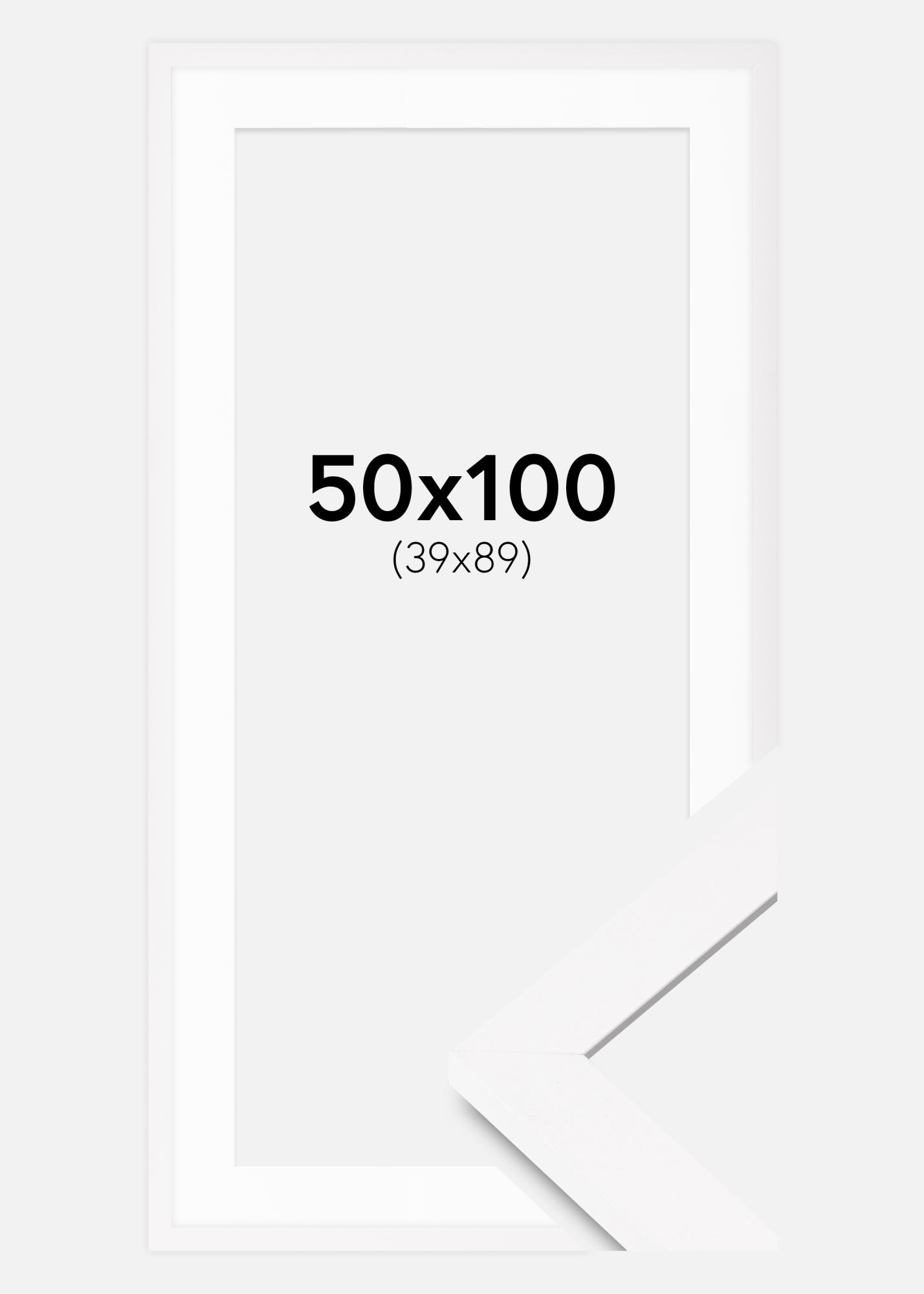Trasforma le tue foto in opere d'arte con la nostra elegante cornice con finitura bianca, completa di un passe-partout dal design raffinato. Questa cornice è perfetta per foto delle dimensioni 40x90 cm e offre alle tue fotografie una cornice professionale. Con una larghezza di 20 mm e una profondità di 14 mm, la cornice offre una bordatura robusta e elegante che mette in risalto le tue immagini nel miglior modo possibile.