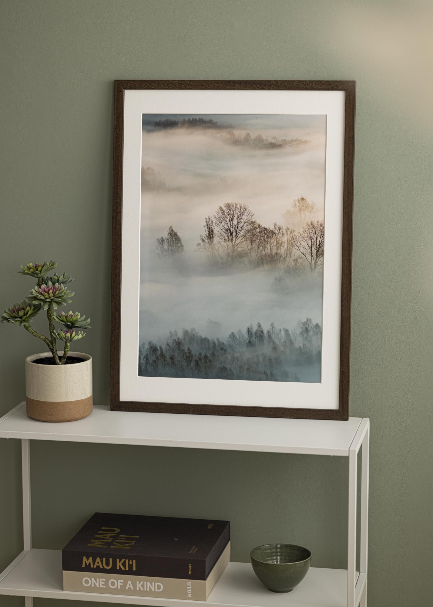Trasforma i tuoi ricordi in opere d'arte con questa elegante cornice in una calda tonalità marrone. La finitura opaca dona un tocco sofisticato, mentre il passepartout bianco crea una bellissima cornice per le tue immagini nel formato 56x76 cm. Con una larghezza di 22 mm e una profondità di 15 mm, questa cornice offre un perfetto equilibrio tra stile e funzionalità.