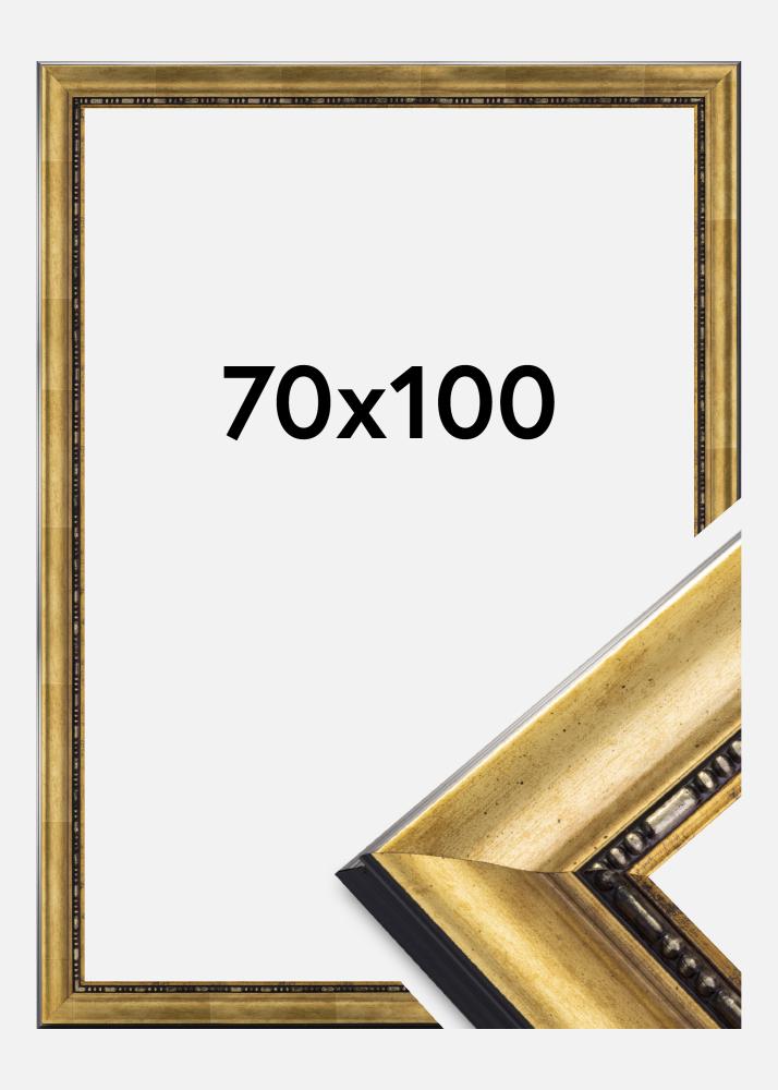 Cornice classica per ritratti per le immagini che ti piacciono particolarmente. La cornice ha lati neri con un colore dorato profilato sulla parte anteriore con decorazioni vicino all'immagine.