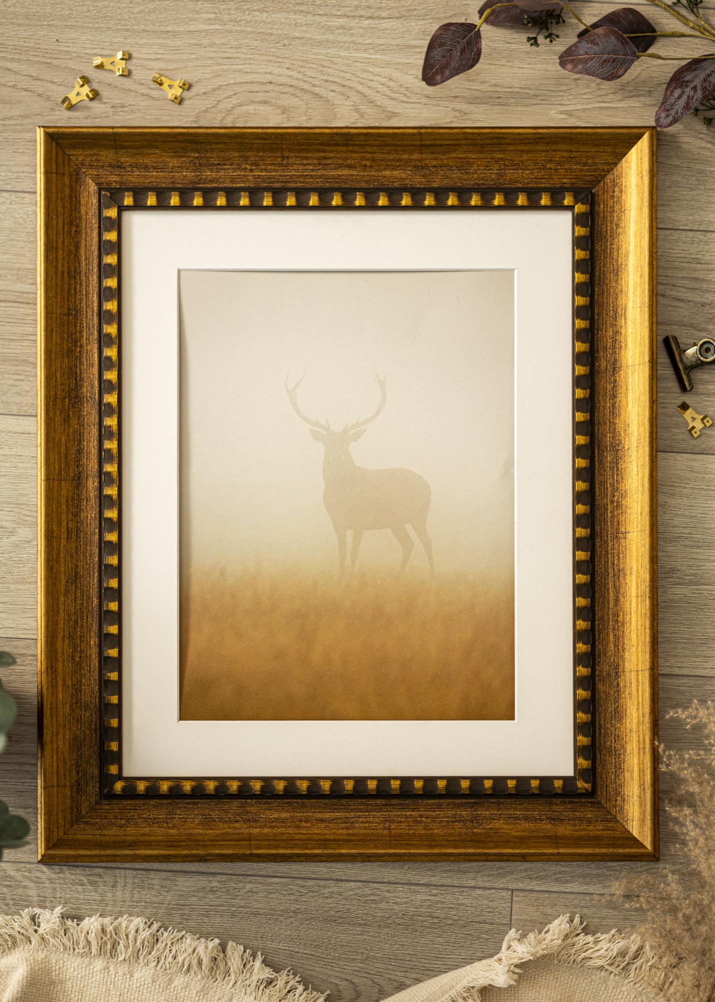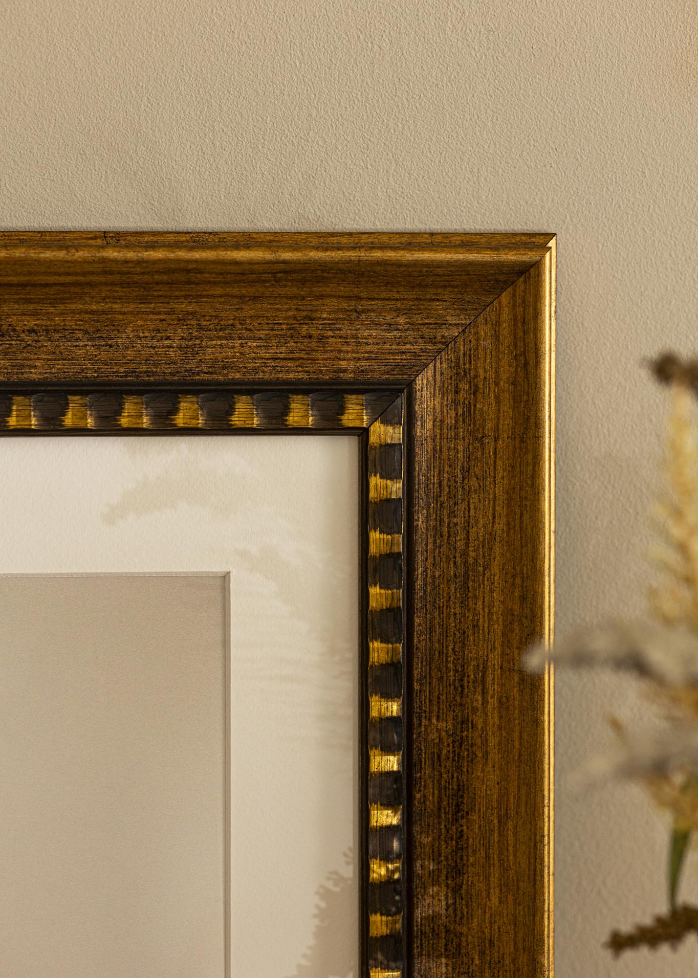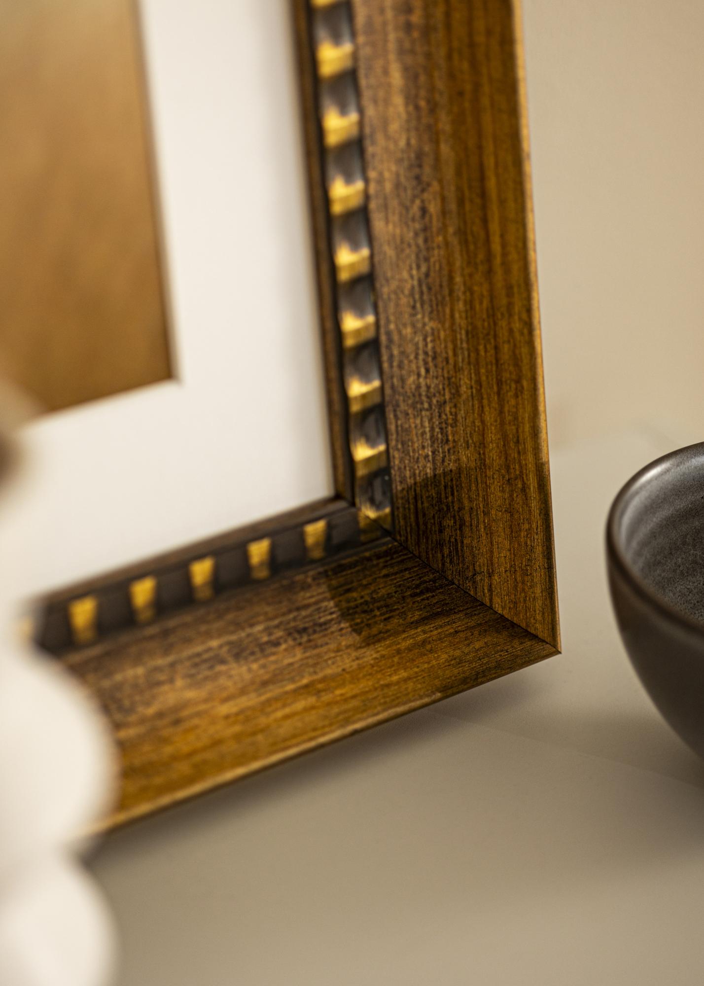 La cornice Camden Oro è una cornice per quadri su misura realizzata da noi, che ti offre la possibilità di ottenere esattamente la dimensione di cui hai bisogno per la tua opera d'arte. Con un colore marrone caldo e una finitura antica elegante, questa cornice fotografica offre un incorniciamento sofisticato per le tue immagini.