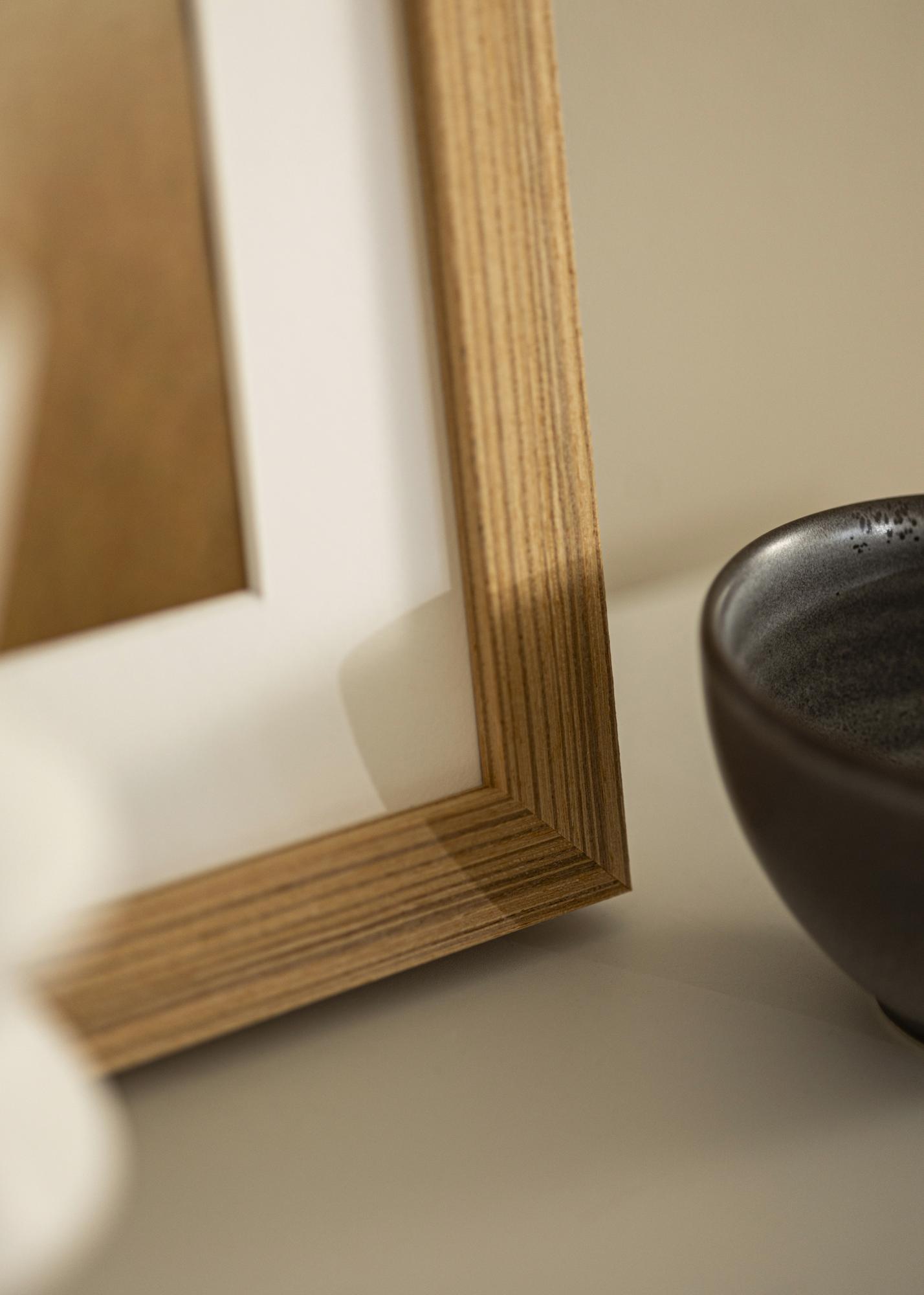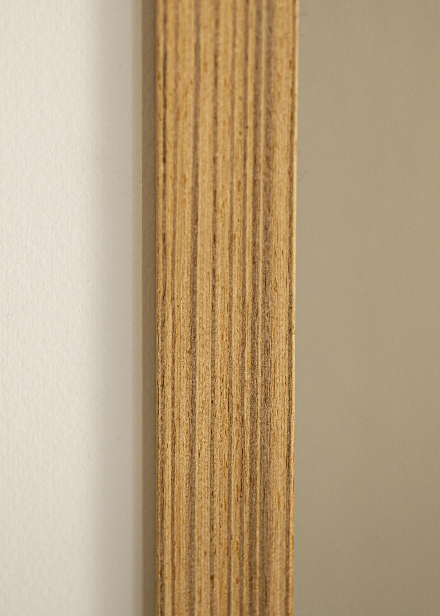 Il listello da 28 mm di larghezza e una profondità di 33 mm conferiscono alla cornice una sensazione di robustezza e stabilità. La venatura verticale chiara accentua la sensazione del legno e crea una struttura vivace. La finitura opaca evidenzia le naturali sfumature della quercia senza produrre effetti riflettenti, rendendola ideale per esporre le tue immagini preferite senza distrazioni.