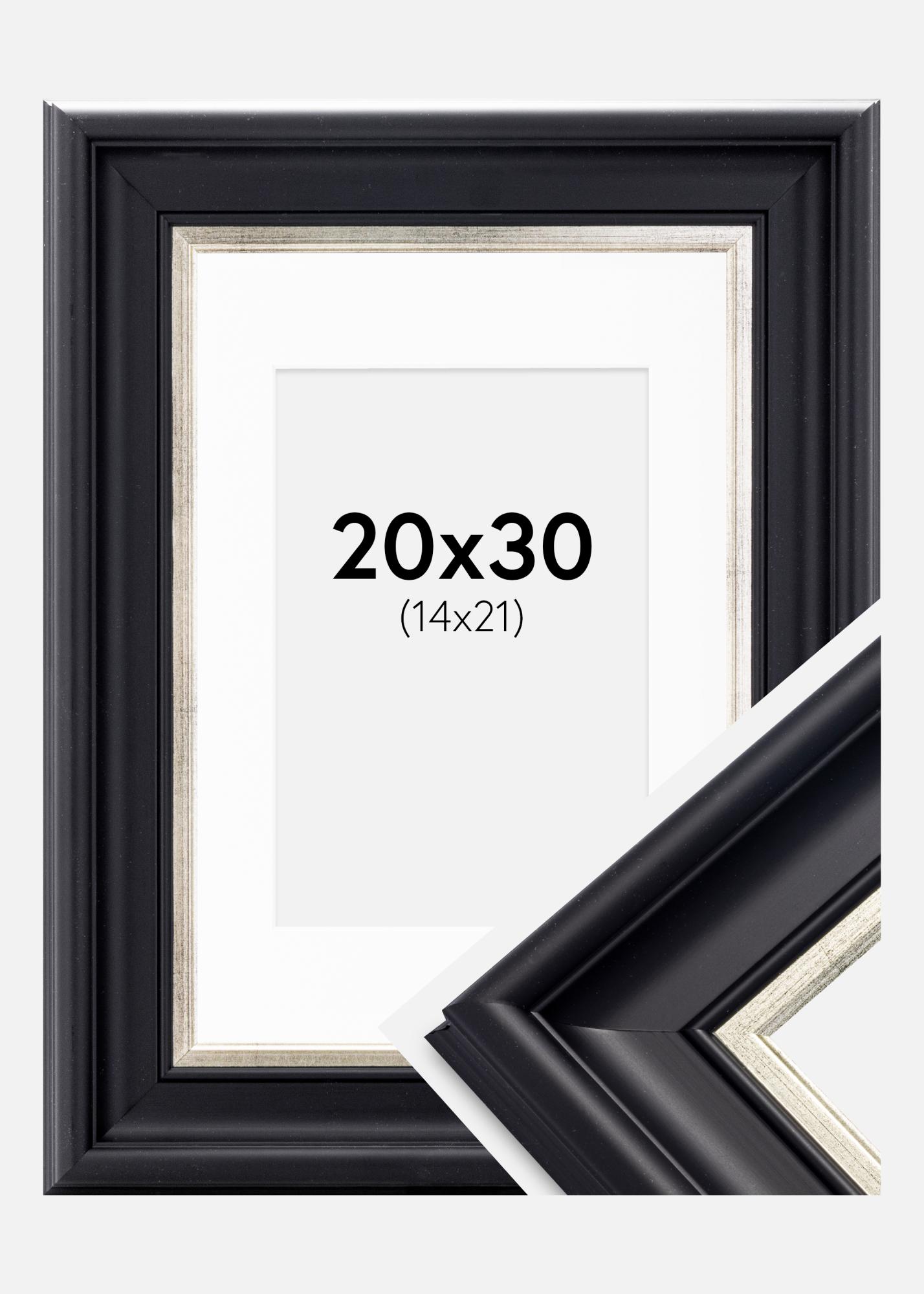 Cornice Dalarna Nero-argento 20x30 cm - Passe-partout Bianco 15x22 cm