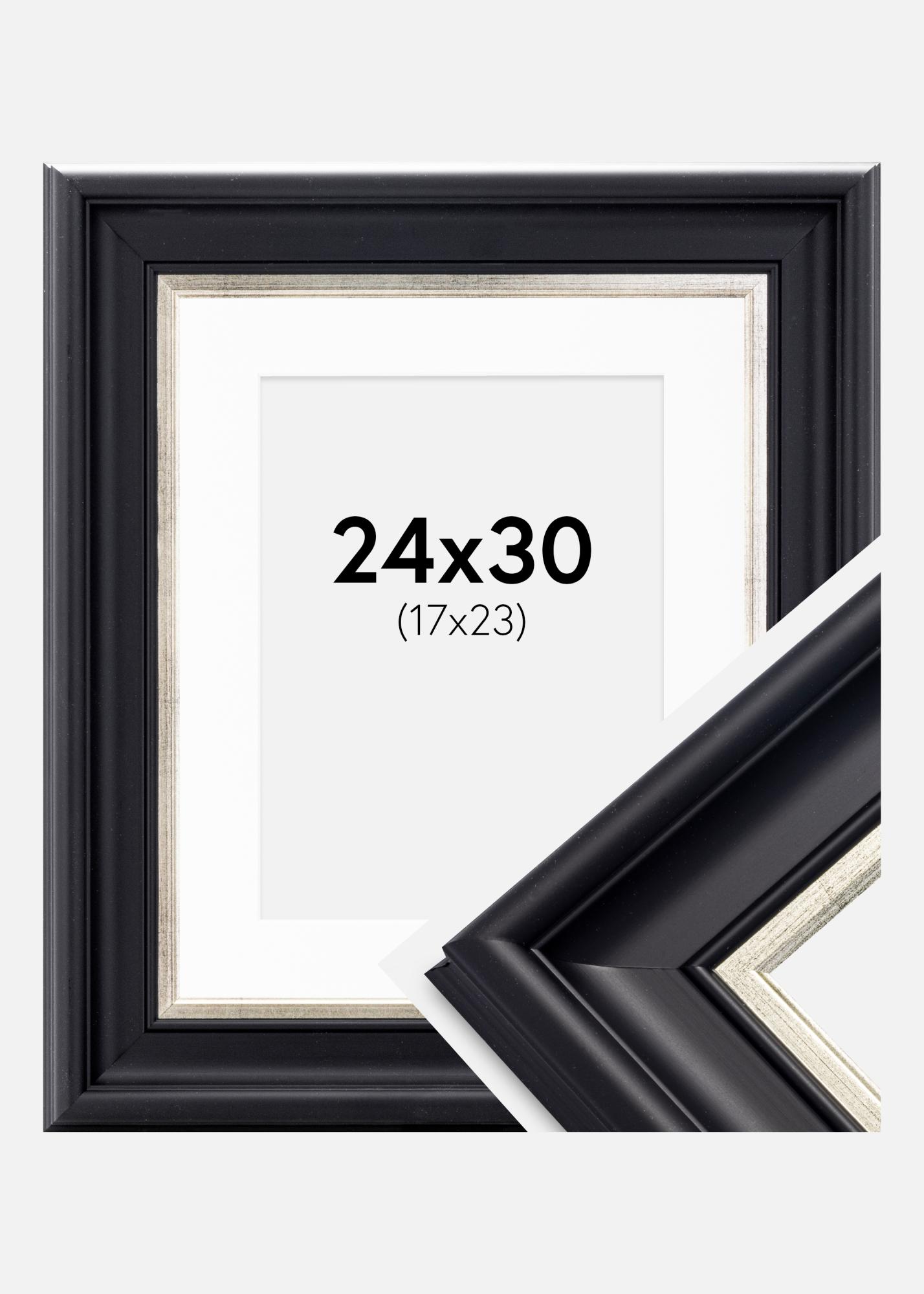 Cornice Dalarna Nero-argento 24x30 cm - Passe-partout Bianco 18x24 cm