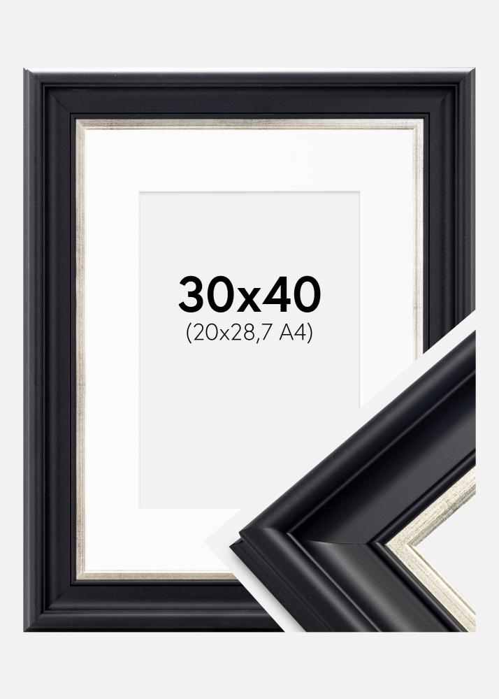 Cornice Dalarna Nero-argento 30x40 cm - Passe-partout Bianco 21x29,7 cm (A4)