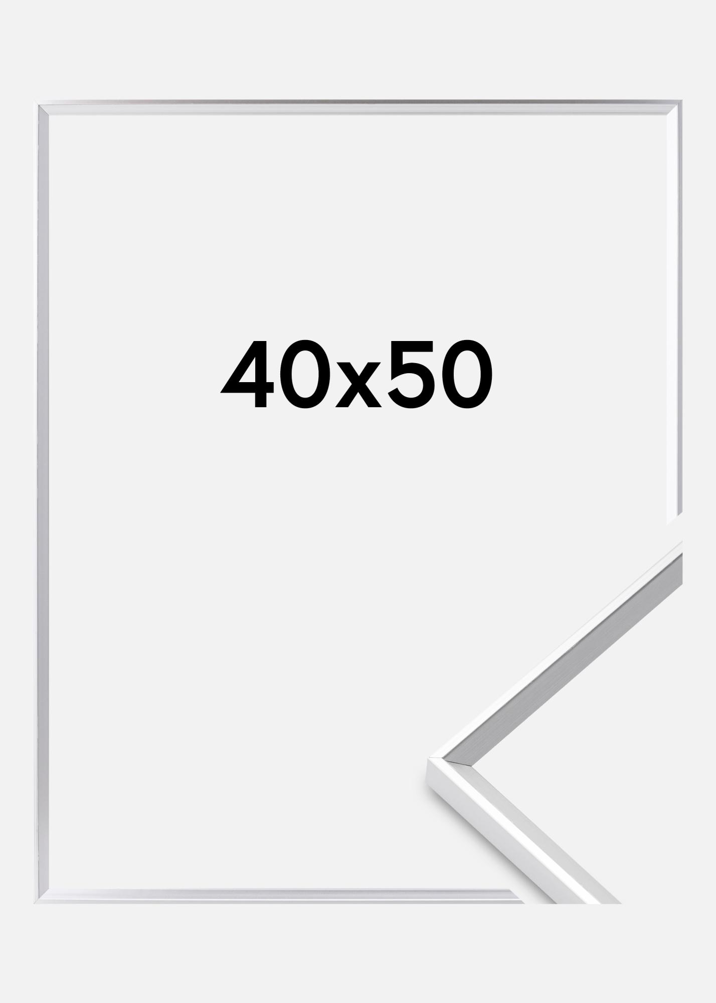 Dai alle tue pareti un tocco di eleganza con la nostra cornice argento per foto della dimensione 40x50 cm. Questa cornice raffinata ha una finitura opaca che si adatta a tutti gli stili d'arredamento. Il sottile listello di soli 10 mm offre una sensazione discreta e sofisticata alla tua opera d'arte o foto selezionata.