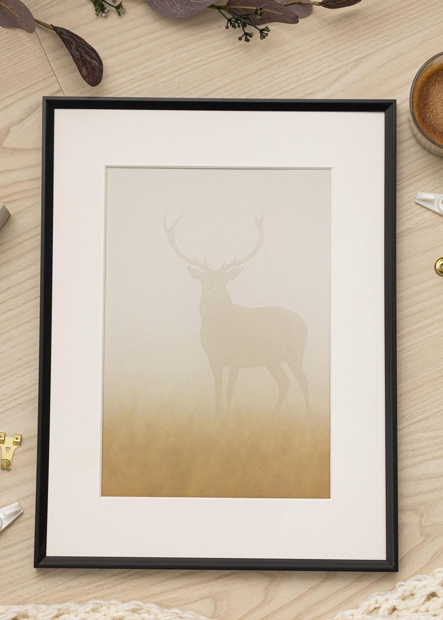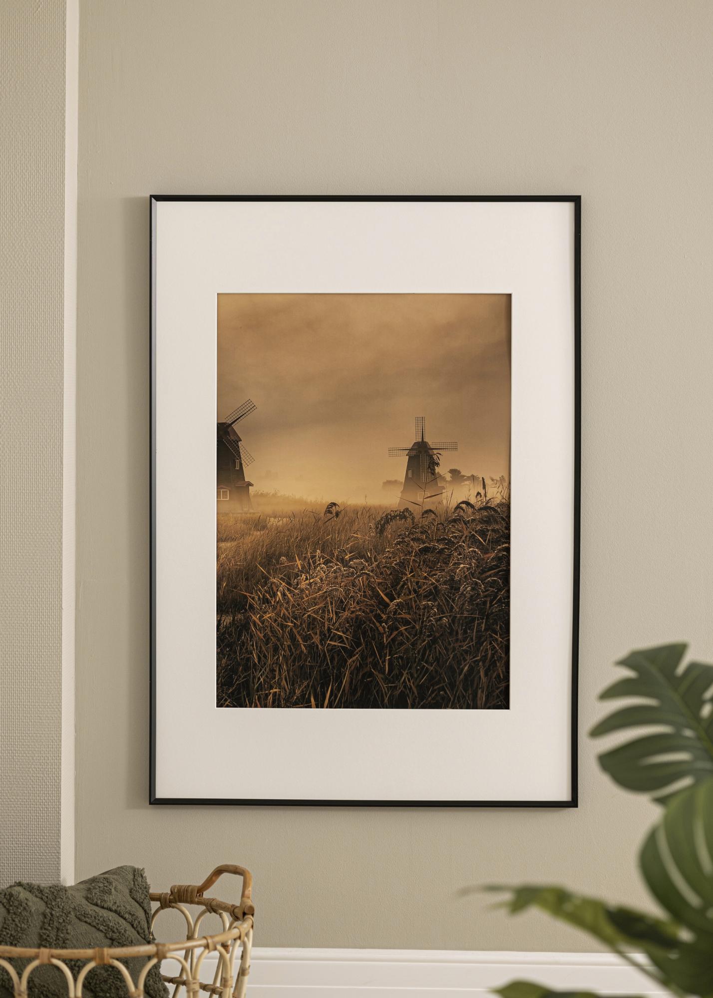 Questo è un moderno cornice nera con un design elegante e una cornice opaca di soli 10 mm di larghezza. Inoltre, la cornice ha un bordo di 45° che si inclina verso l'interno dell'immagine, conferendo al tuo quadro un'incorniciatura alla moda ed elegante. L'effetto di incorniciatura è ulteriormente accentuato dalla profondità della cornice di 18 mm, che conferisce anche una sensazione di solidità alla cornice.