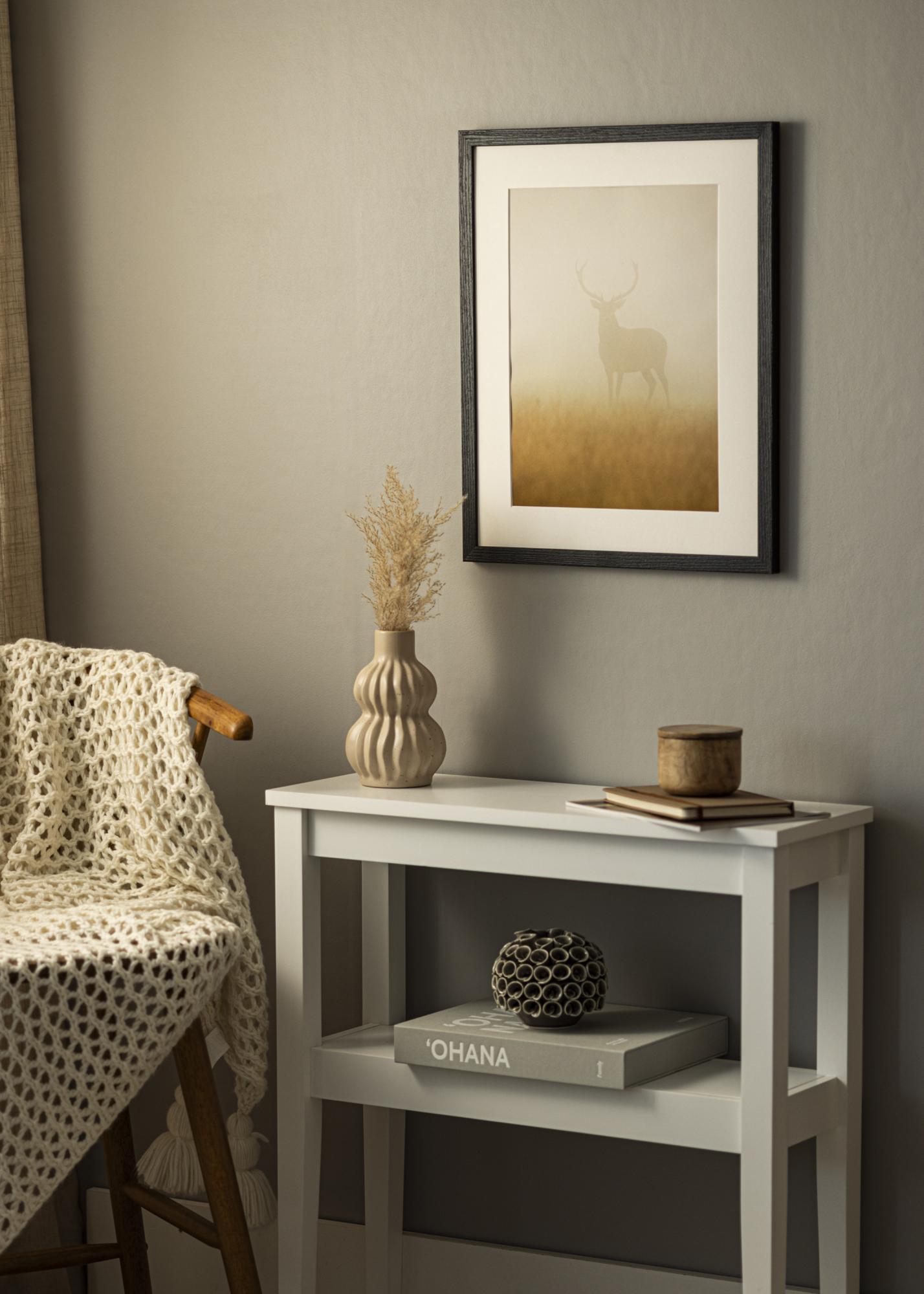 Devon Nero ha un listello di cornice largo 20 mm e una profondità di 20 mm, offrendo un'incorniciatura stabile e robusta. Realizzata in legno di ayous, questa cornice è sia durevole che esteticamente attraente. Ogni cornice viene creata nel nostro laboratorio di cornici, garantendo alta qualità e precisione in ogni dettaglio.