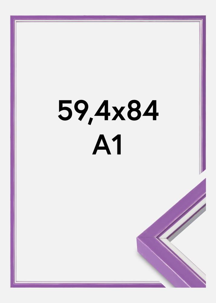 Aggiungi un tocco creativo alle tue locandine e le tue opere d'arte con questa cornice unica delle dimensioni di 59,4 x 84 cm (A1). La combinazione di colori viola e bianco dona un tocco giocoso ed elegante che si adatta a diversi stili e motivi.