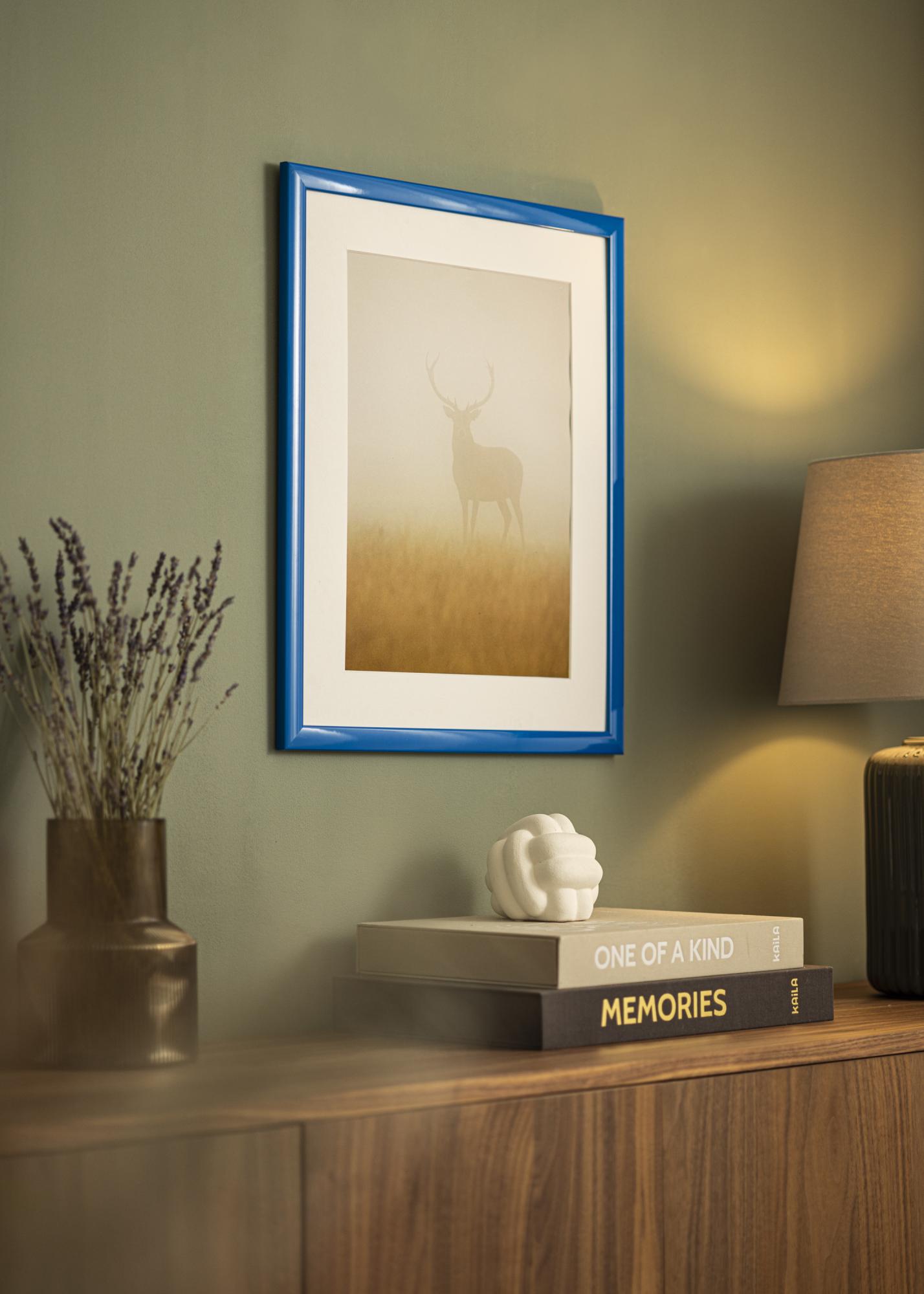 Scopri la nostra cornice per quadri Dorset Blu su misura, una cornice elegante e moderna realizzata direttamente nel nostro laboratorio di cornici. Con il suo colore blu profondo e la finitura lucida, questa cornice offre una superficie riflettente e vivace che cattura davvero l'occhio. La superficie liscia intensifica l'intensità del colore e conferisce un tocco elegante e moderno alle tue immagini.