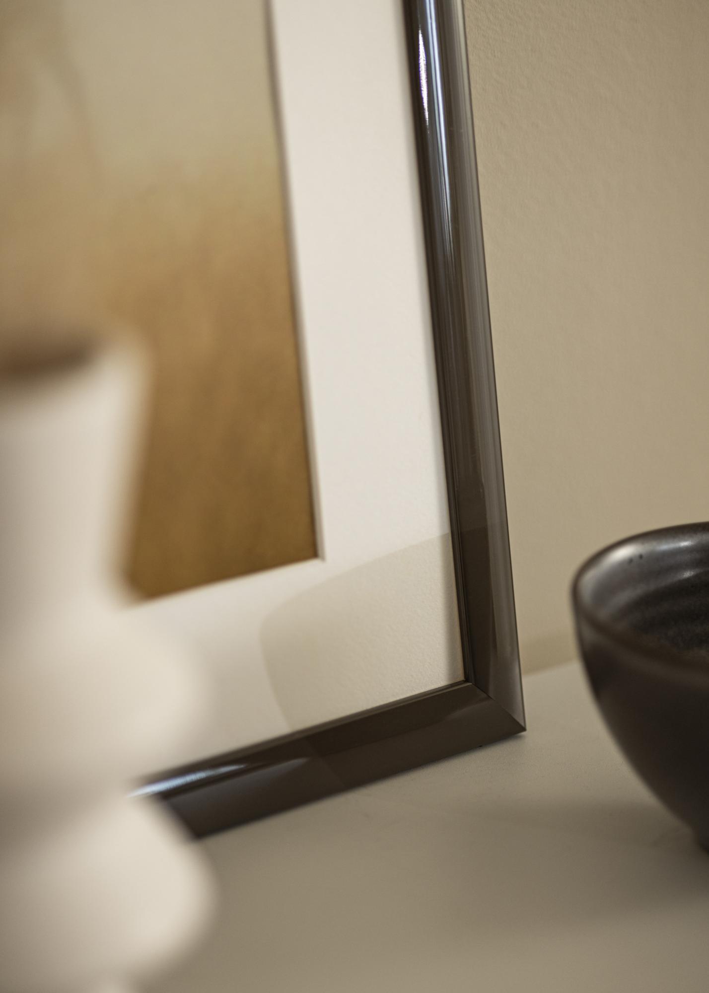 La cornice Dorset Grigio Scuro è una cornice fotografica su misura realizzata nel nostro laboratorio di cornici, che ti offre la possibilità di avere una cornice che si adatta perfettamente alle tue esigenze. Con il suo colore grigio scuro e la finitura lucida, questa cornice offre una superficie elegante e riflettente che può davvero mettere in risalto le tue foto o opere d'arte. La verniciatura liscia accentua la profondità del colore e crea un'espressione vivace che cattura la luce in modo unico.